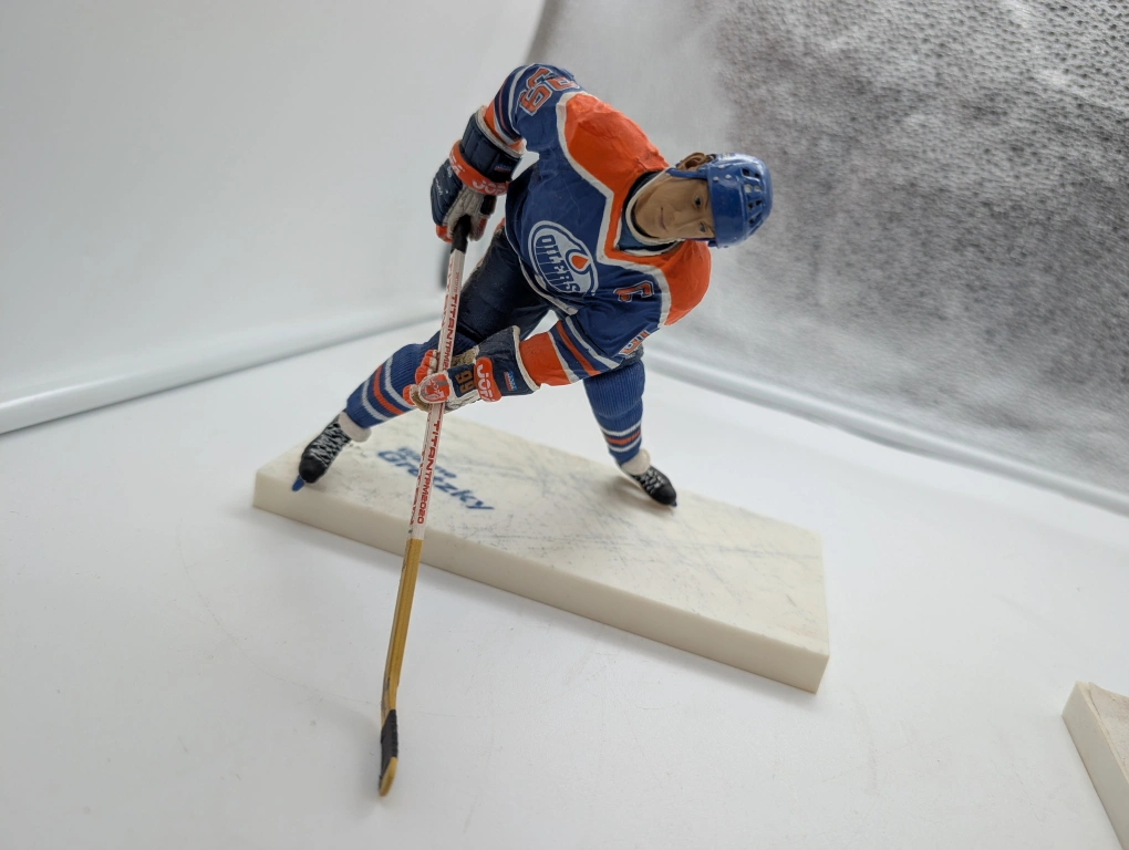 Selling a Wayne Gretzky figurine in his Edmonton Oilers uniform! The figurine is in great shape and captures Gretzky in his iconic pose. A must-have for any Oilers or hockey fan!