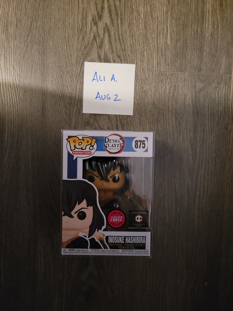 Selling a Funko Pop! Animation figure of Inosuke Hashibira from Demon Slayer, number 875. It's a limited flocked chase edition! The box is in great shape.