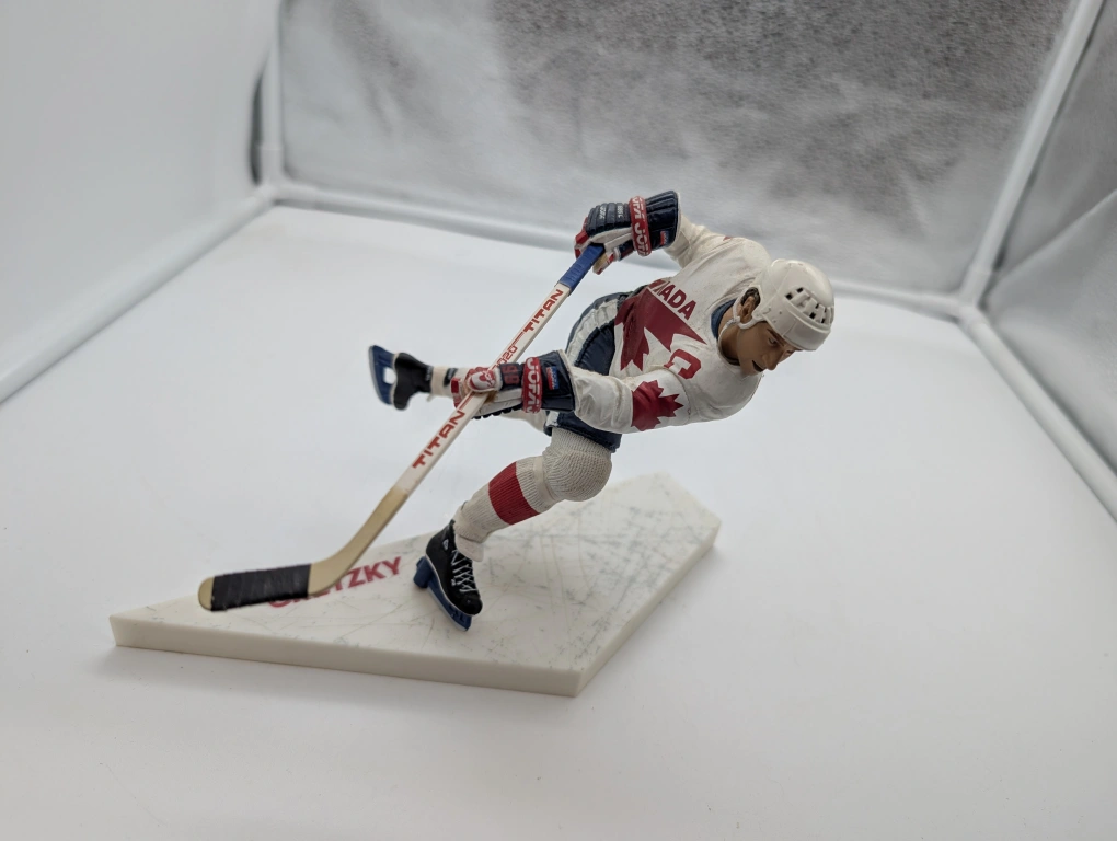 Selling a Wayne Gretzky figurine. It features him in his Team Canada jersey, number 99. The figure is in good condition and would be great for any hockey fan!