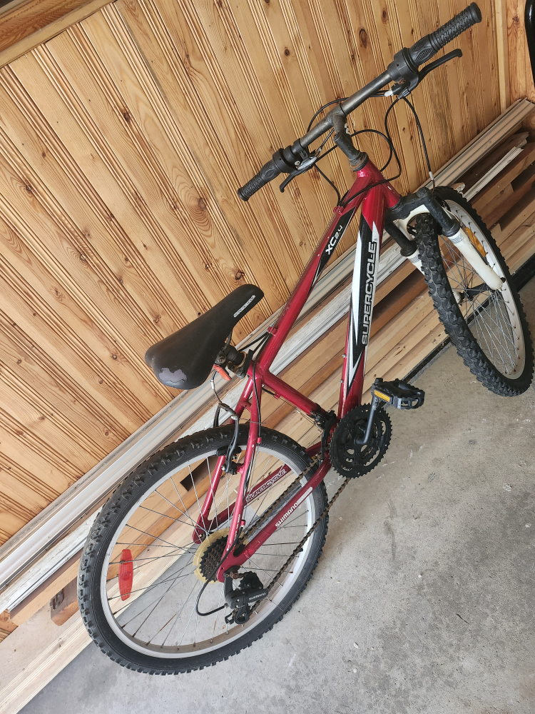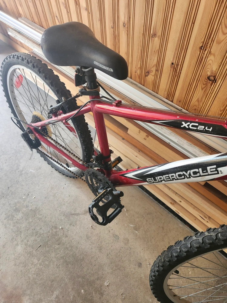 Selling a Supercycle XC2.4 mountain bike. It's red and black. Great for getting around town or hitting some trails! it's used but still working nicely