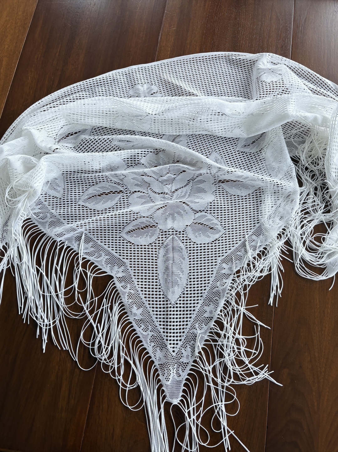 Very nice shalls. One evening sparkly black, one white lace, one white with tassels and one ecru off white with tassles. Asking $30 each or all 4 for $100. From smoke free pet free home