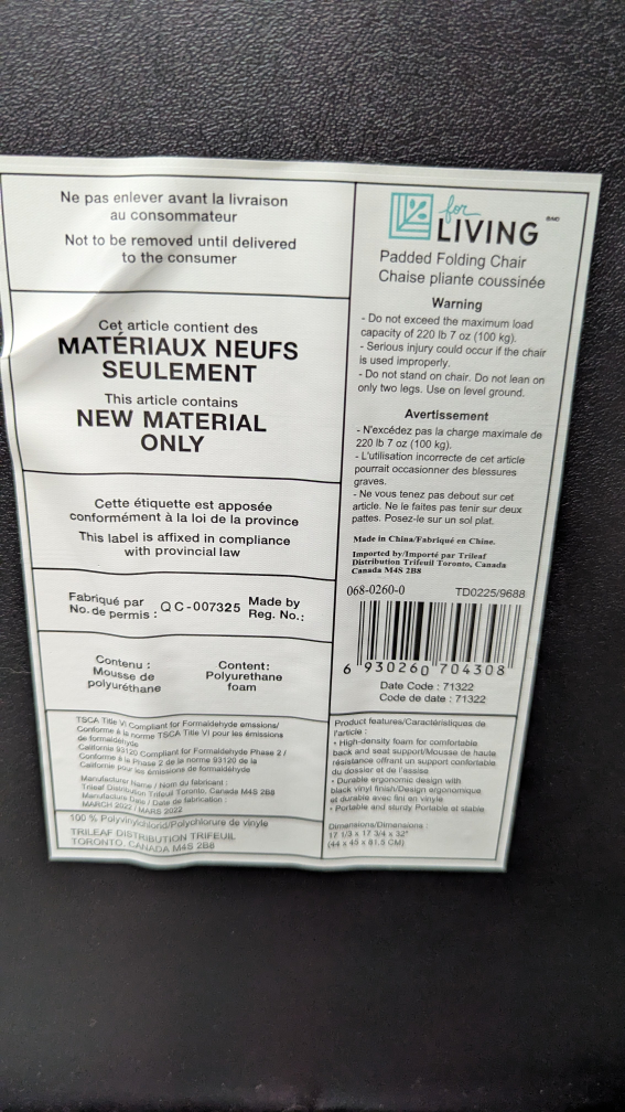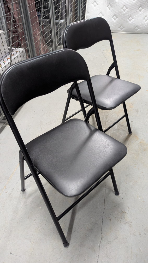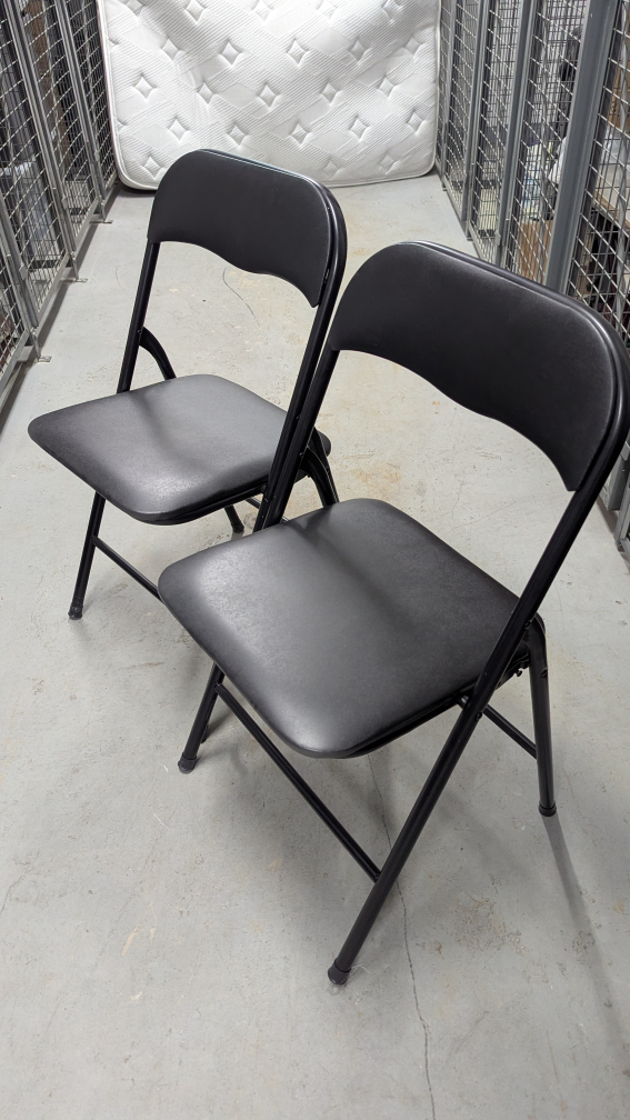 Pair of padded folding chairs in black from Canadian Tire, barely used.