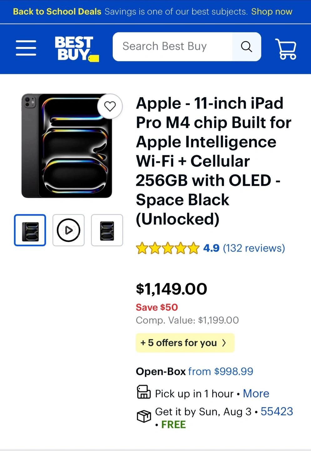 Selling an Apple 11-inch iPad Pro with the M4 chip in Space Black! It's the Wi-Fi + Cellular model with 256GB of storage. The iPad is unlocked and comes with its original box. Just opened it to see if everything is in order. Will have Apple warranty until July 2026. Retails for $1,149.00