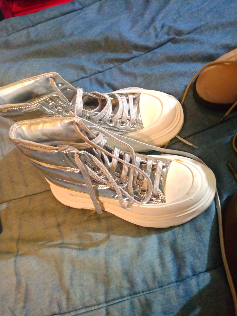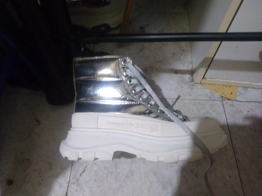 Selling a pair of Alexander McQueen boots in size 35. They have a unique silver finish and a chunky sole. Perfect for adding a bit of edge to your look!