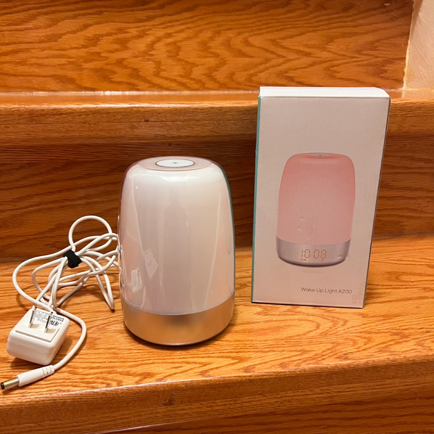 Selling a Wake Up Light A200! This is a multi-colour LED bedside lamp with touch control and a digital clock. It also has natural alarm music and ambient themes. The box and charger are included!