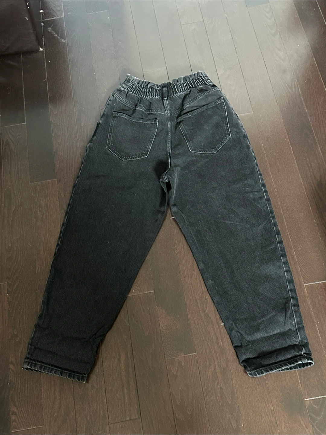 Chic and sustainable, these ZARA paperbag waist jeans are made from 100% organic cotton for a soft, premium feel. Featuring a high-rise fit, cinched paperbag waistband, belt loops, and tapered leg, they’re both flattering and comfortable. The black denim adds a sleek edge—easy to dress up or down.