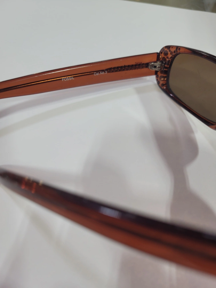 Selling a pair of Fossil sunglasses in a lovely brown colour. They have a stylish design with embellishments on the sides. These sunglasses are in good condition and ready for a new owner!