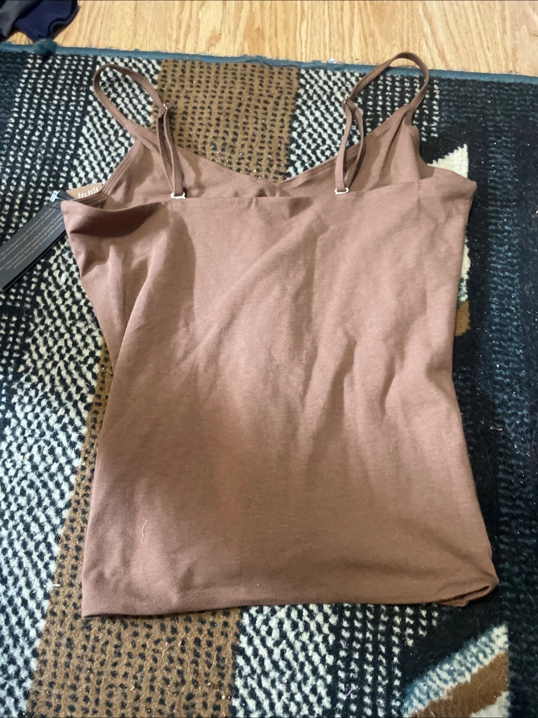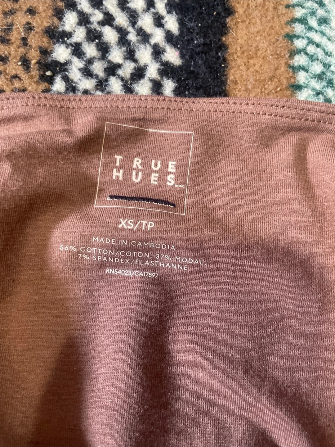 Cute True Hues tank top in size XS. It's a lovely brown colour and made of 56% cotton, 37% modal, and 7% spandex for a comfy fit!