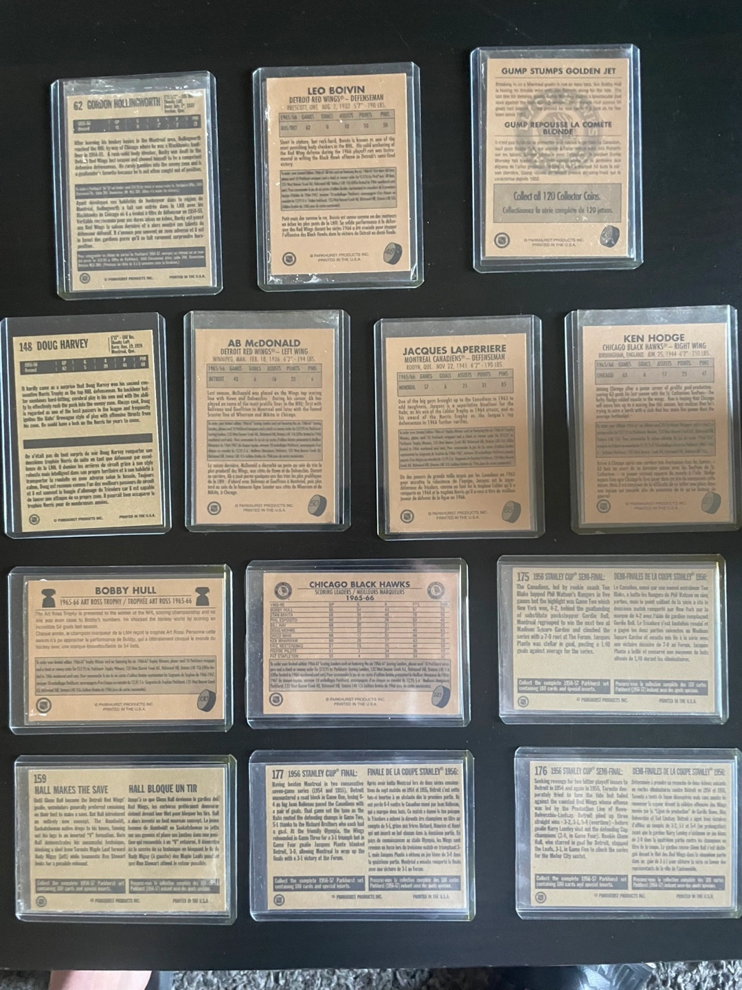 Selling a collection of vintage 1965-66 Parkhurst hockey cards. These cards feature some hockey legends like Gordie Hollingworth, Doug Harvey, Leo Boivin, Ab McDonald, Jacques Laperriere, Ken Hodge and Bobby Hull. A great addition to any hockey memorabilia collection!