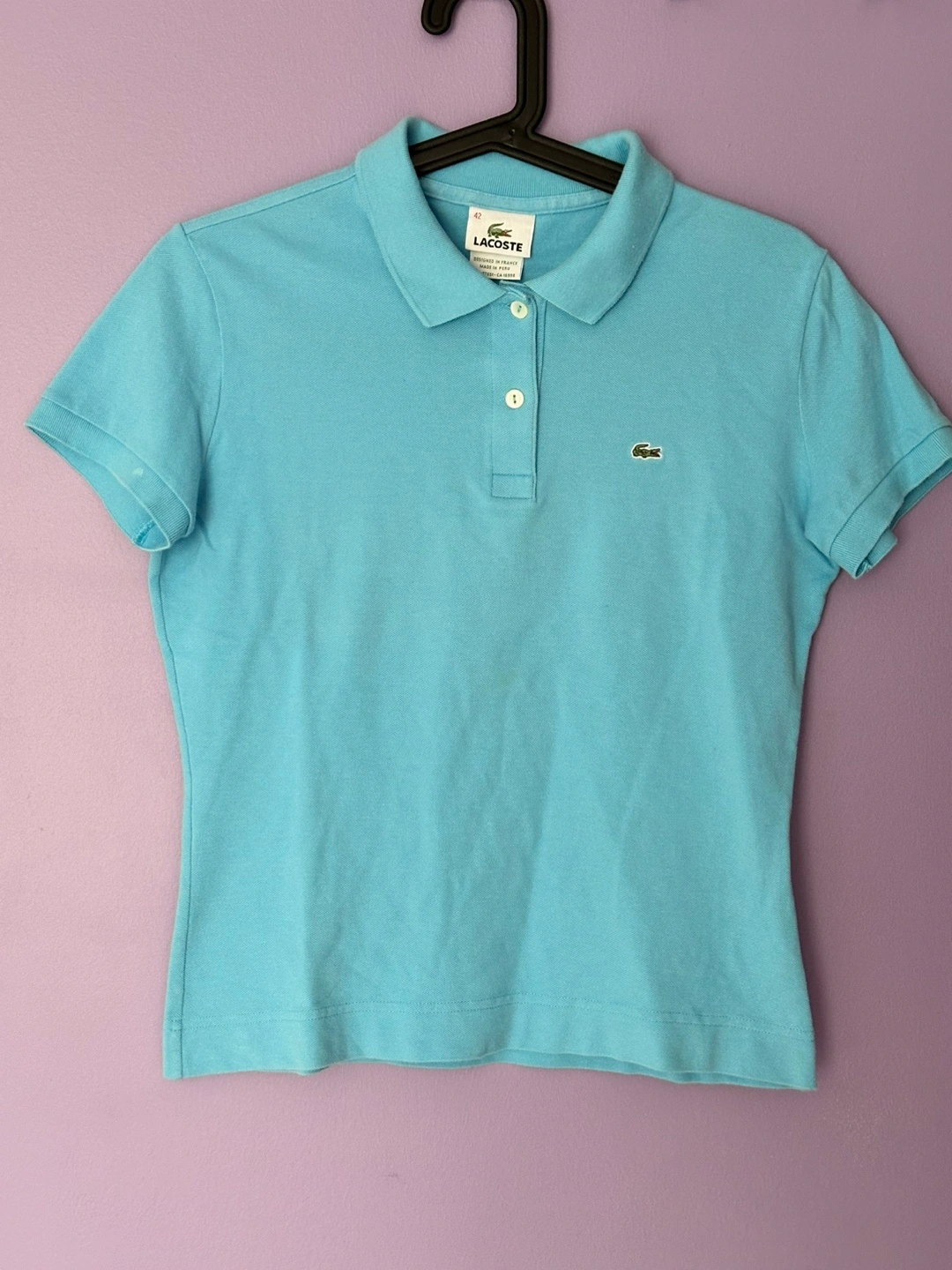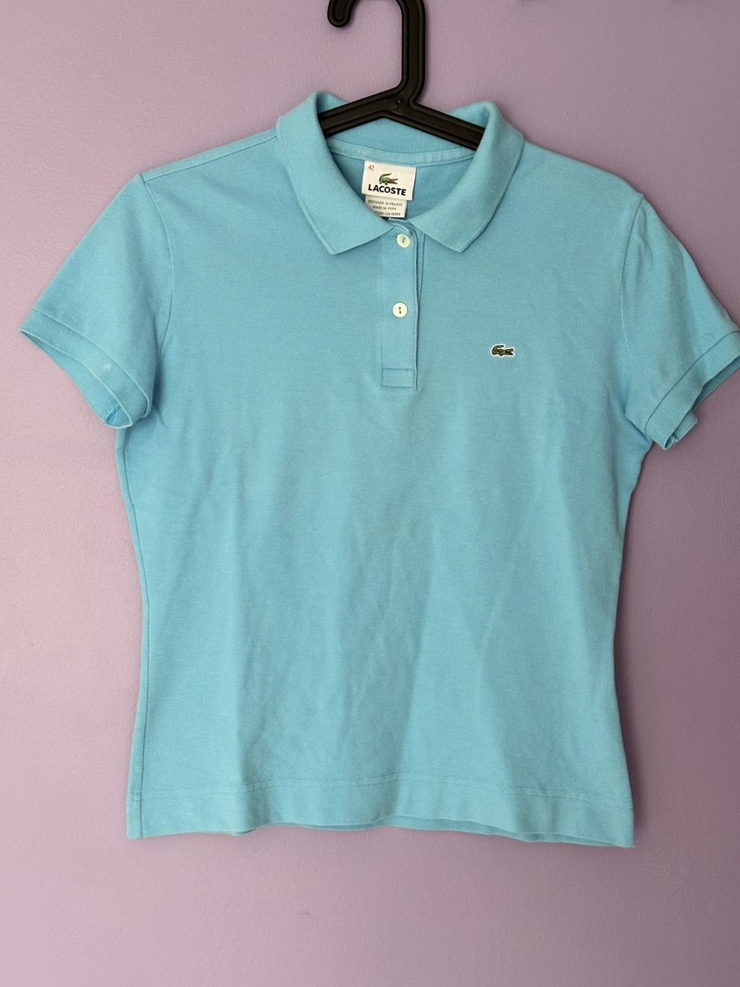 Selling a Lacoste women's polo shirt in a lovely light blue colour. It's a size small. Perfect for a casual day out!