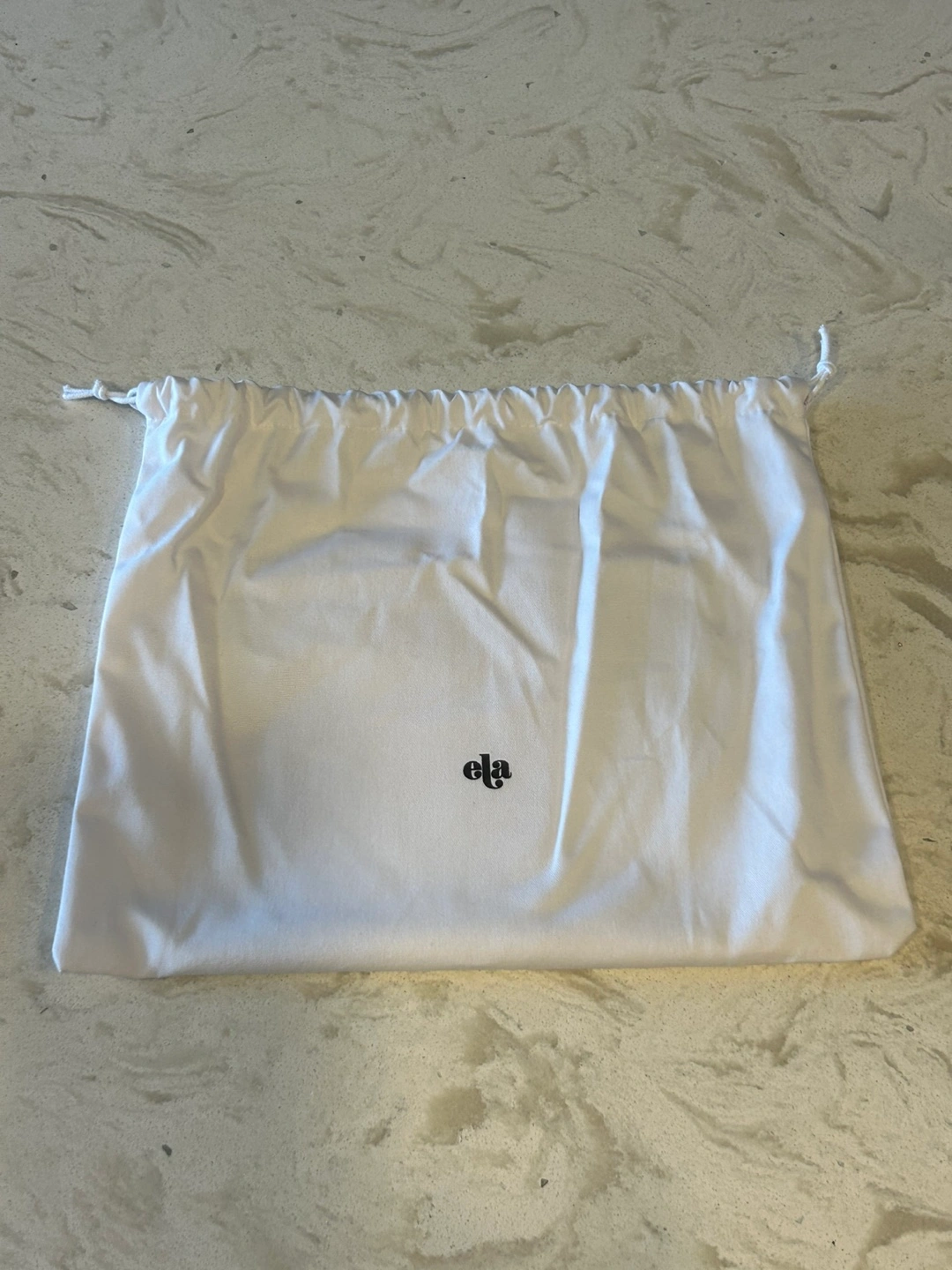 - Fully lined in ela's signature purple 100% recycled plastic bottle lining