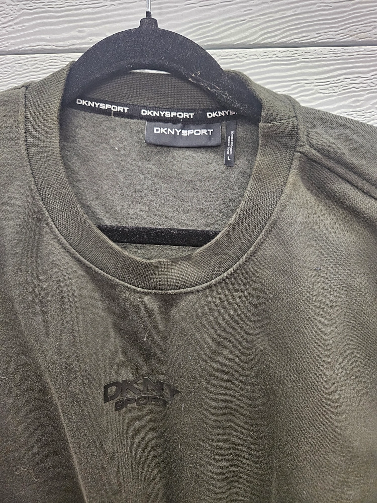 Cozy DKNY Sport sweatshirt in a lovely olive green colour! It's in great condition and perfect for layering or wearing on its own. The material is soft and comfortable, making it ideal for everyday wear. Size is M.