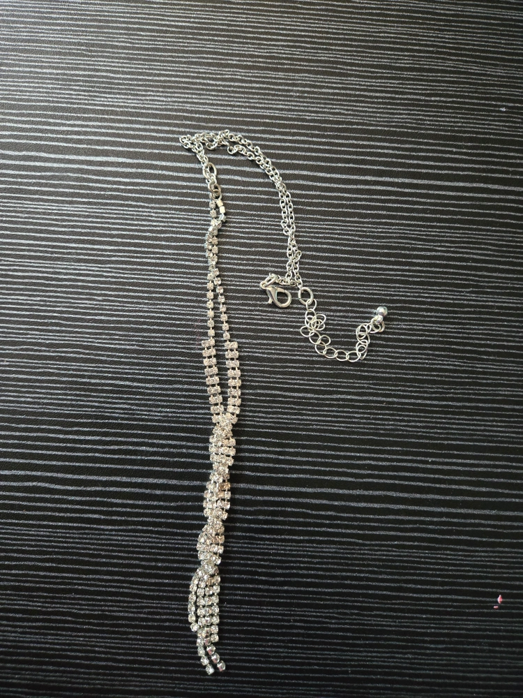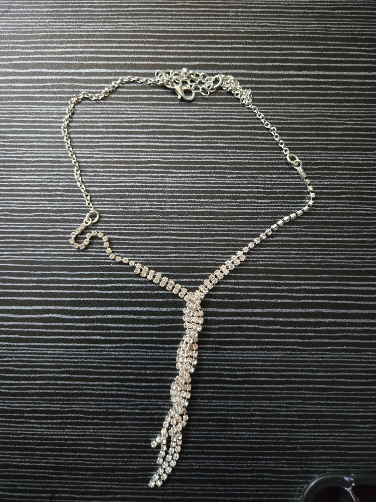 Selling a cute silver necklace with a rhinestone tassel! It's in great condition and would be a nice addition to any outfit