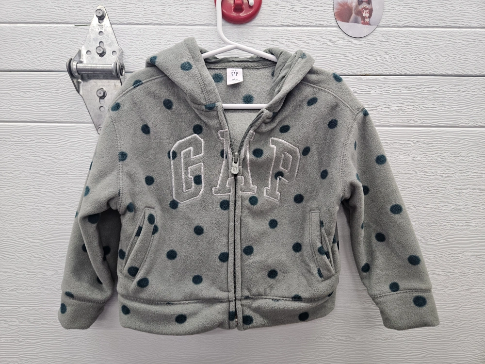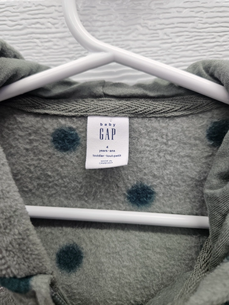 A super cute and cozy GAP kids fleece hoodie in a lovely grey colour with a polka dot pattern! It's a size 4 and in great condition. Perfect for keeping your little one warm and stylish!