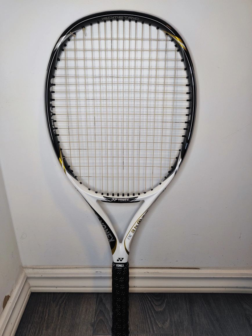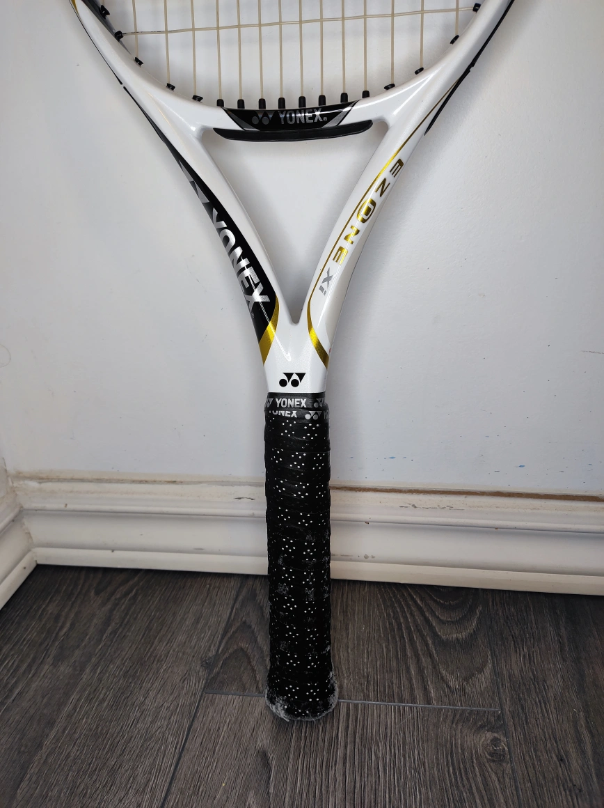 Selling a Yonex EZONE XI tennis racquet! It has an average weight of 280g and a head size of 102 sq. in. The material is HM Graphite + X-Fullerene. It also features a Quad Power System. A great racquet for your next tennis match!