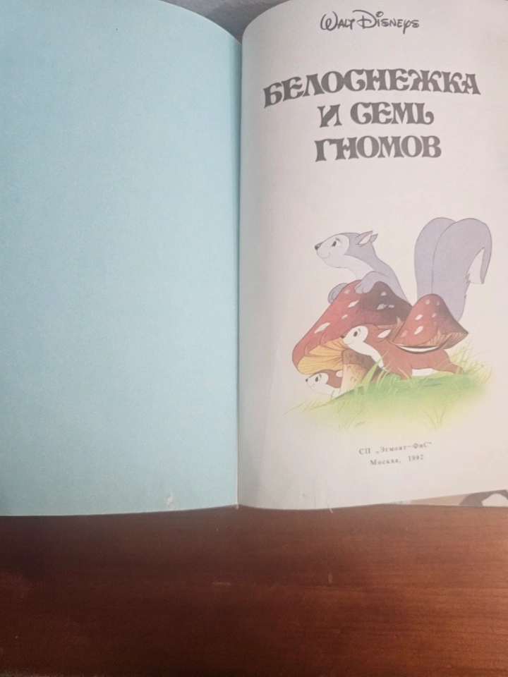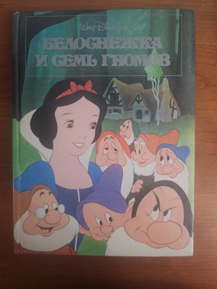 I have a Walt Disney book featuring "Snow White and the Seven Dwarfs" for sale! It is in good to fair condition. There is some minor wear, and the binding of the first few pages is loose but still intact. Please check the photos for reference. This book is from 1992 and is in Russian. It's ready for a new home!