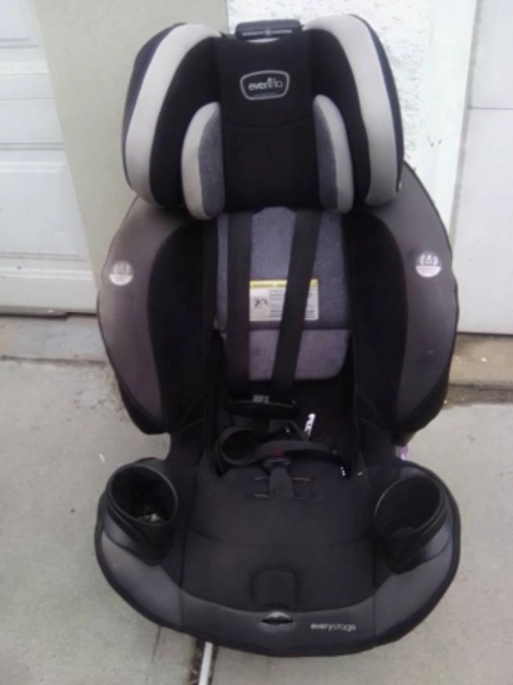 Selling an Evenflo EveryStage DLX all-in-one car seat. It can rotate to 5 different positions, and fastening it forward facing or rear facing means it offers a total of 10 different positions. this is perfect for long rides where laying flat is more conducive to napping! It's in great condition and ready for a new home! It's black and gray and has two cup holders. What you see is what you get. Pick up in Astoria Queens