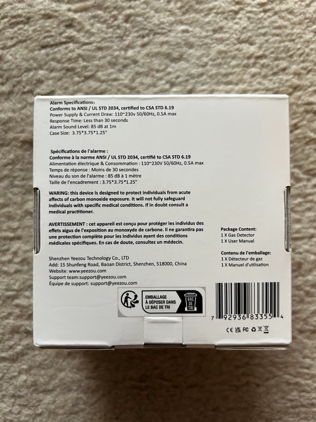 It conforms to ANSI / UL STD 2034, certified to CSA STD 6.19. Power Supply & Current