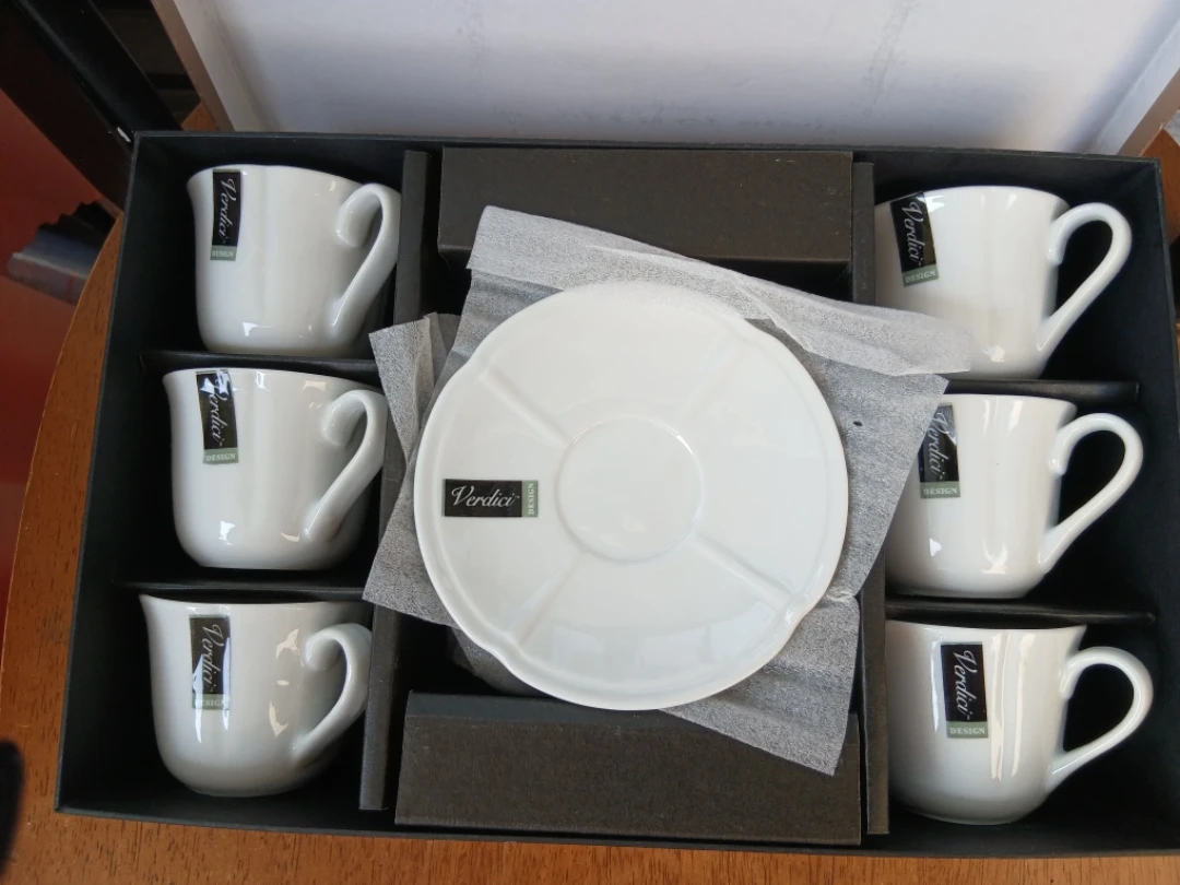 Selling a set of Verdici Design espresso cups and saucers. The set includes 6 small cups and 6 saucers, all in excellent condition, brand new. They come in their original box, perfect for gifting or adding a touch of elegance to your kitchen! Great present for Christmas, or New Years!