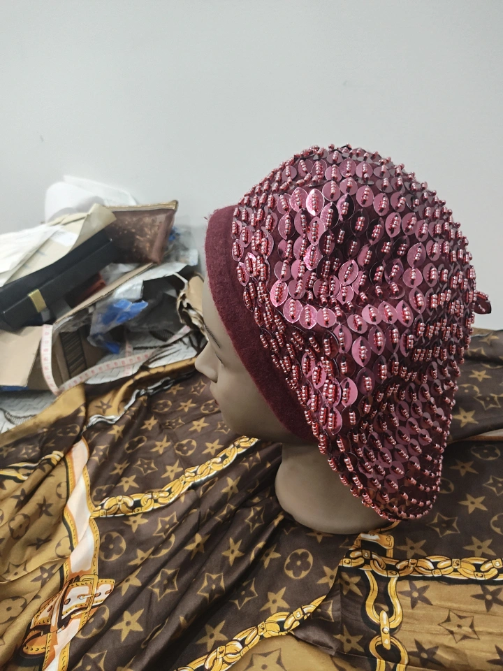 Selling a cute bungady beret hat with sequins and beads. It is in good condition and would be a fun addition to any outfit