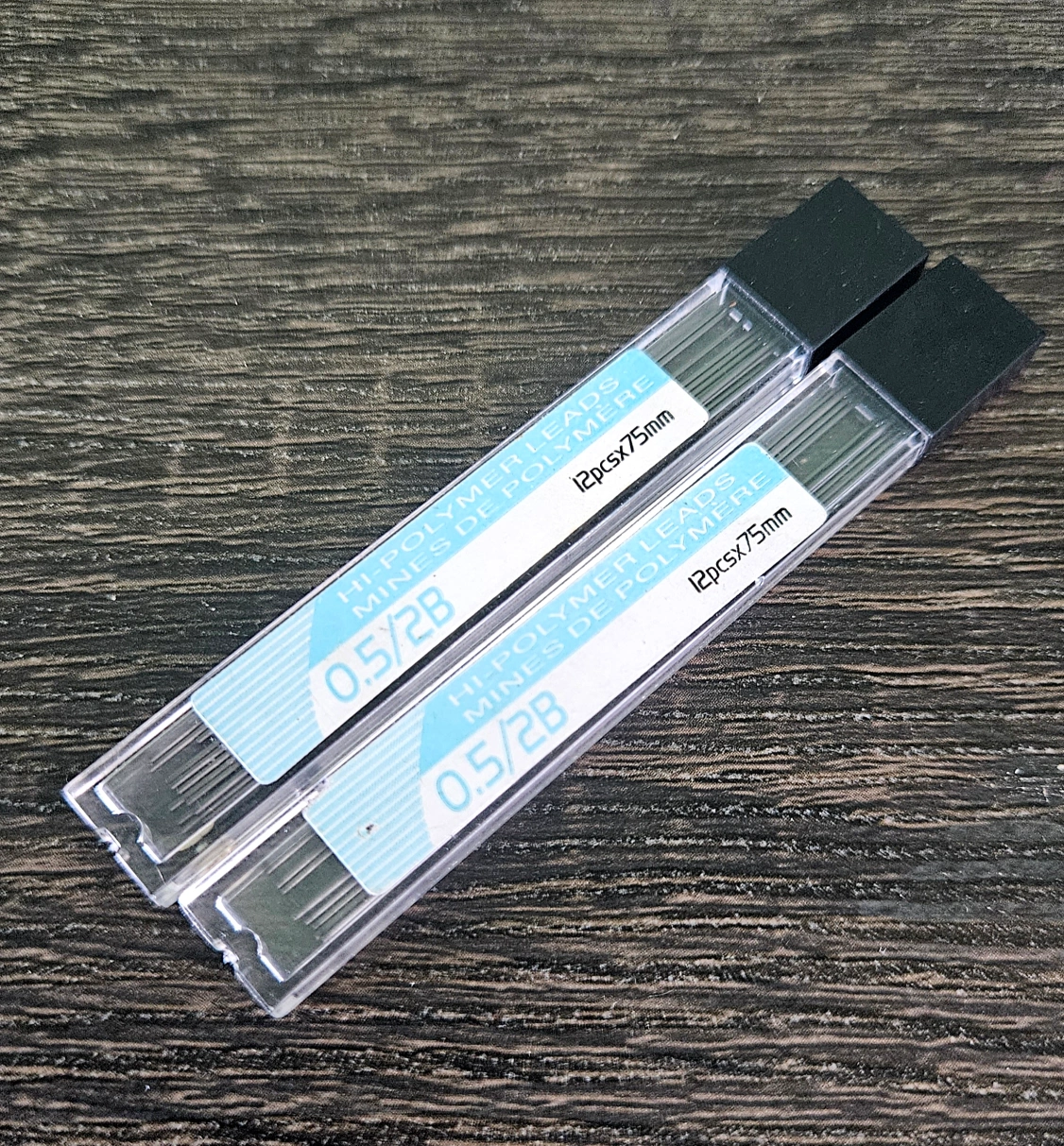 Selling two packs of Hi-Polymer Leads. Each pack 0.5/2B leads, sized at 75mm. Perfect for your mechanical pencils!
