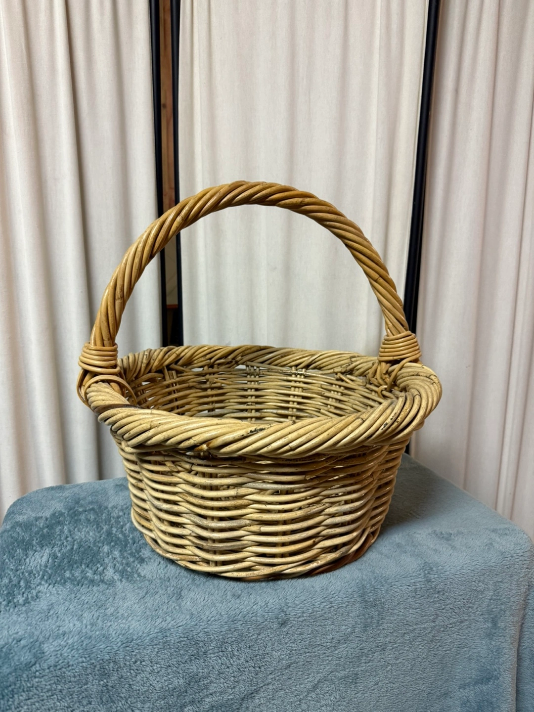 Here's a charming wicker basket, perfect for adding a touch of rustic appeal to your home. It's in great shape and ready to hold your treasures or brighten up any room