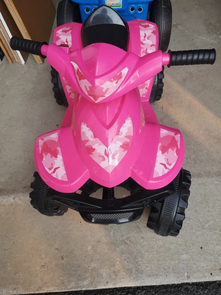 Selling a cute pink ride-on ATV made by Paragon Child Products! It's perfect for little ones who love adventure. The ATV features a fun pink camouflage design and sturdy construction. Ready for a new home!