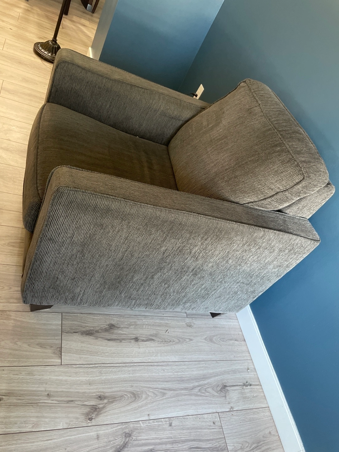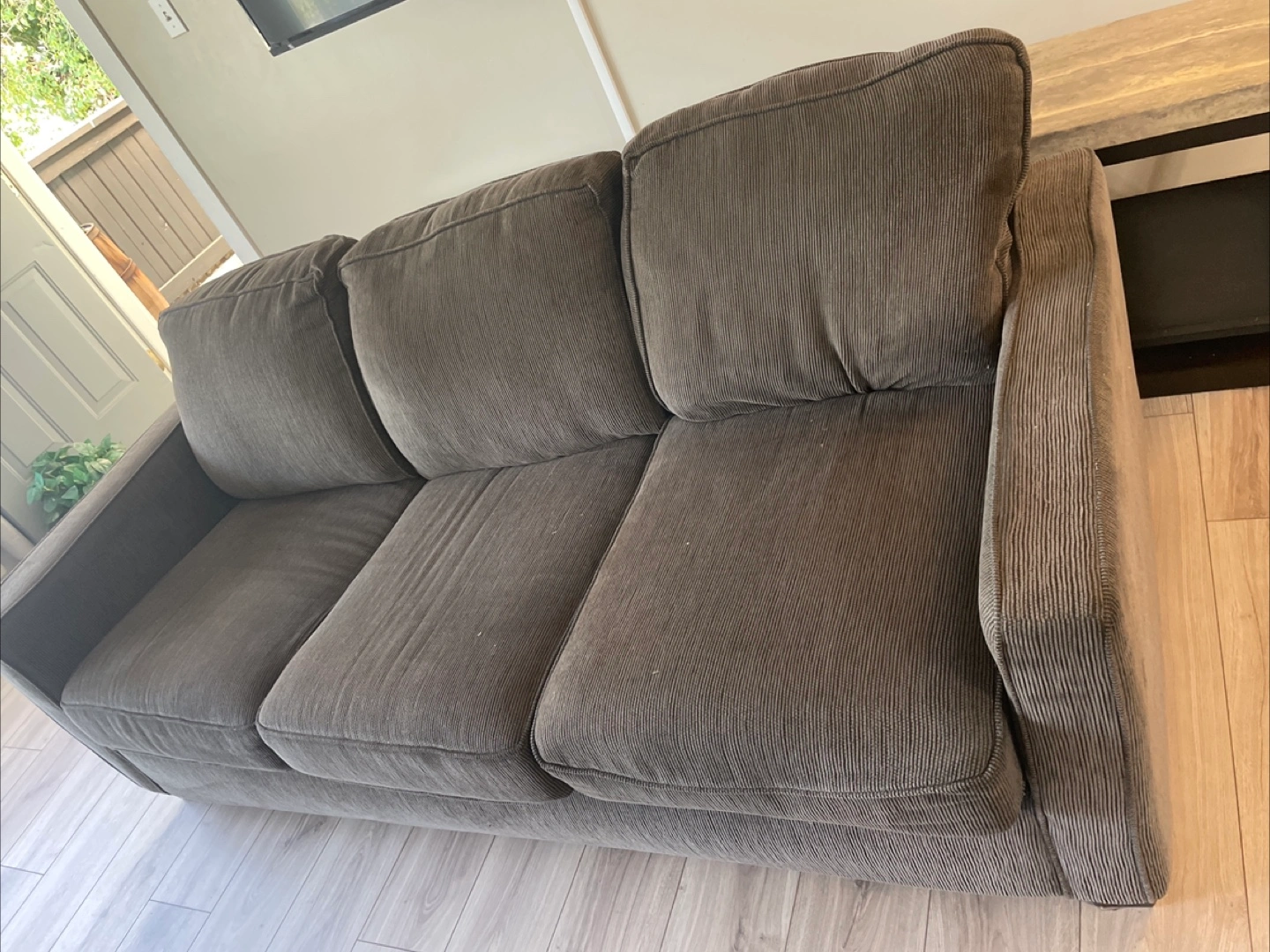 Selling a comfy brown corduroy sofa and matching armchair! They're in great shape and would be perfect for a living room or den. The corduroy material gives them a nice, textured look. They are well-maintained and ready for a new home!