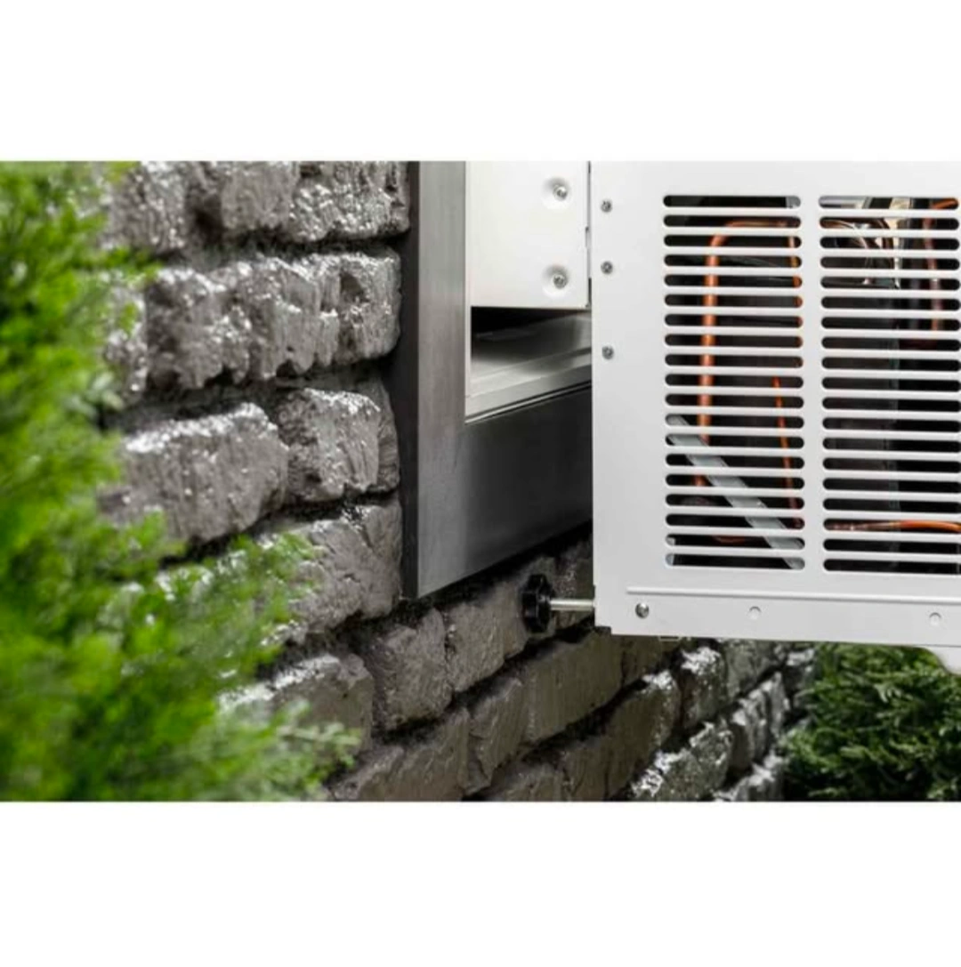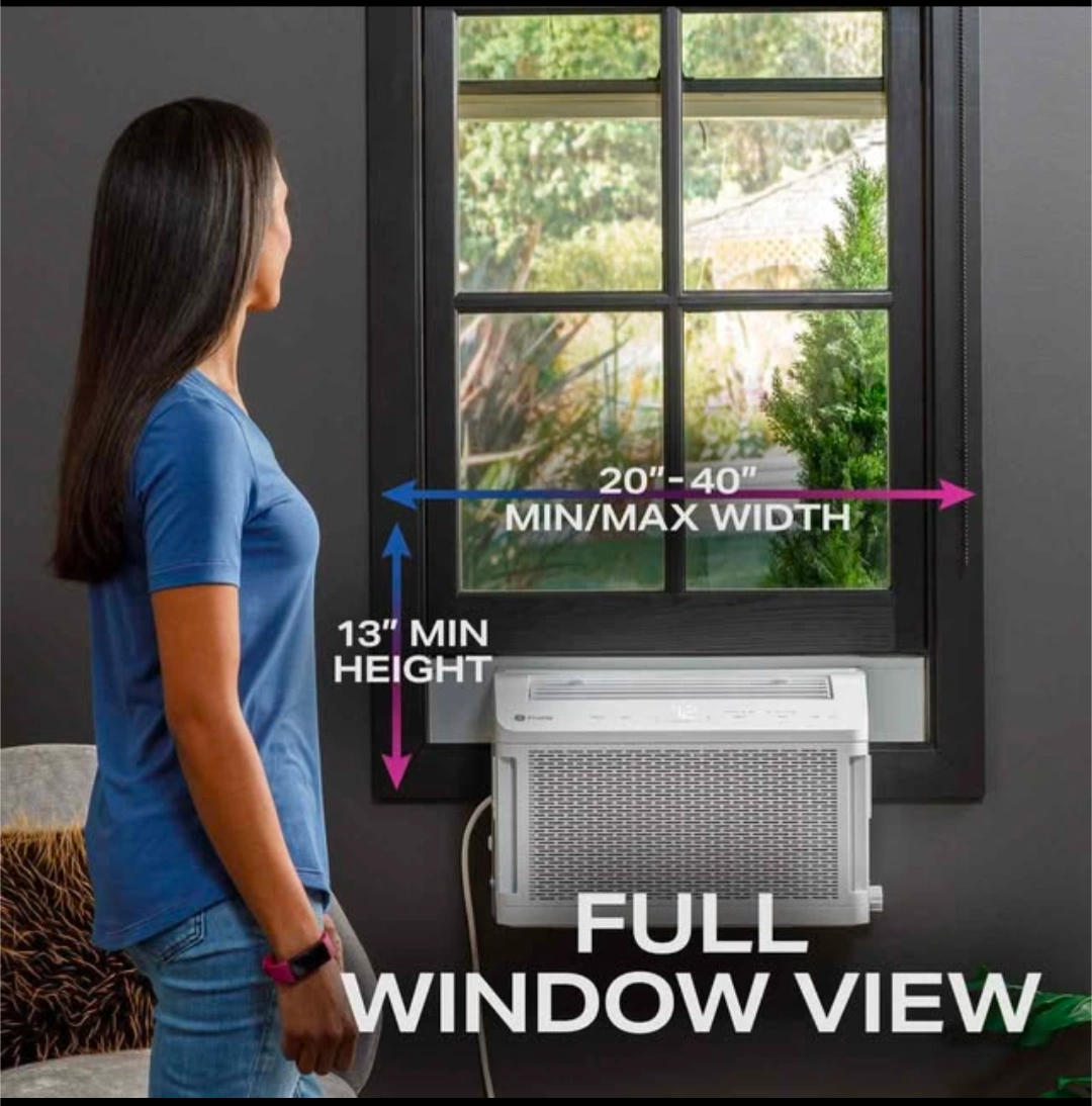 This window air conditioner is designed to maintain the full view through the window, letting it open and close freely after you install the unit and allowing more natural light into the room. Fits windows 20"-40" wide, 13" minimum window opening height, 10" minimum height from floor.