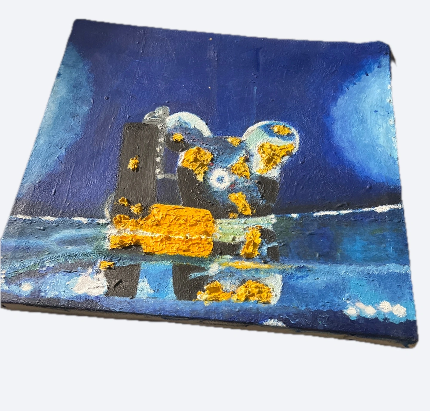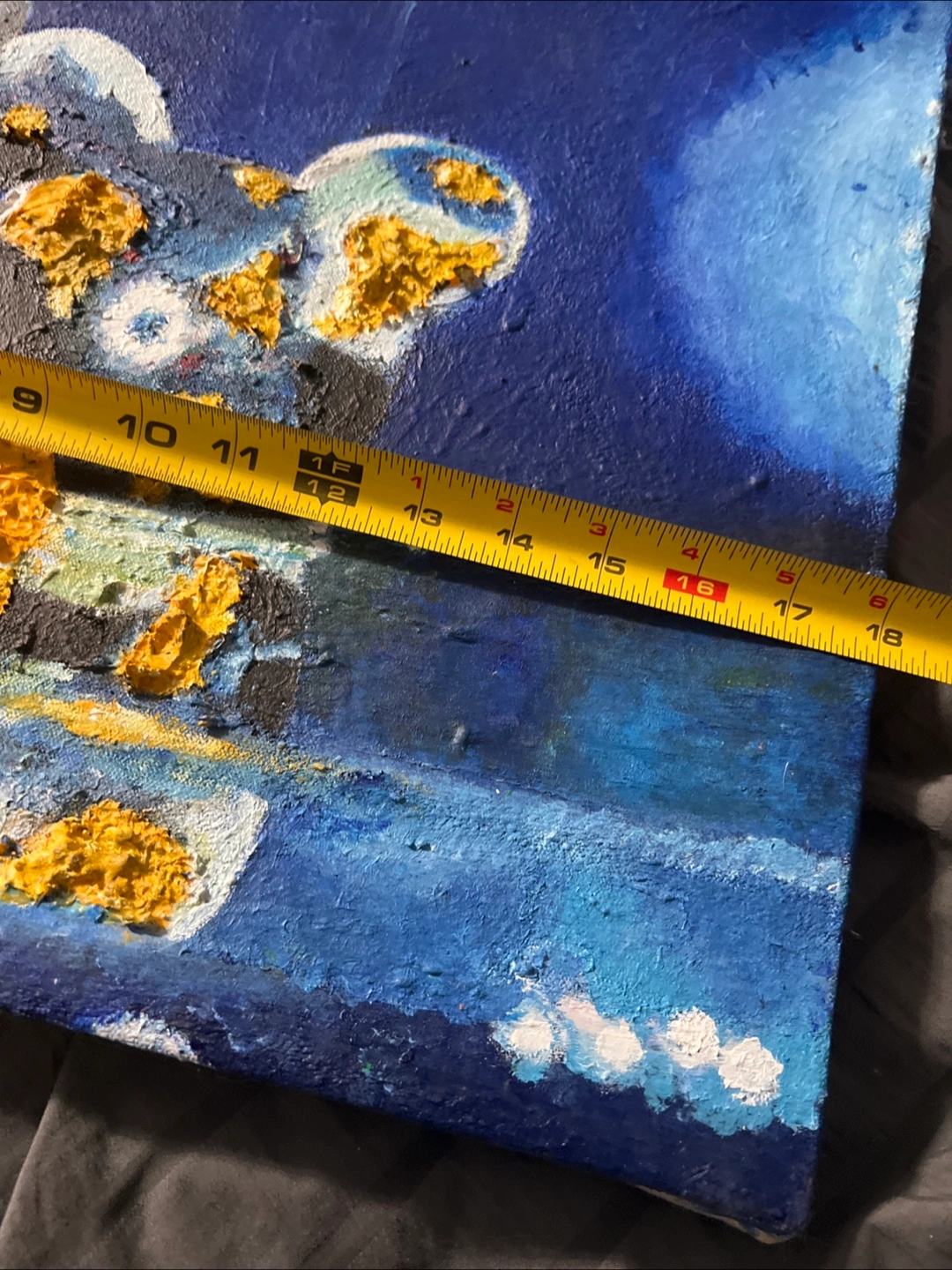 Original art piece ,Selling an abstract painting with a mix of blue and yellow hues. It's approximately 18 inches by 18 inches. Would look great in any room!