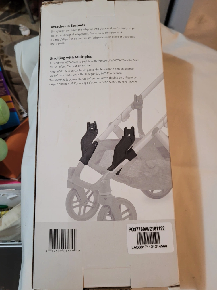 Selling a set of UPPAbaby VISTA V2 Lower Adapters, compatible with VISTA models from 2015 onwards! These adapters allow you to attach a second bassinet, MESA infant car seat, or toddler seat to your VISTA stroller, making it perfect for growing families. Box is included, though it has some wear and tear (just box not adapters! adapters are new).