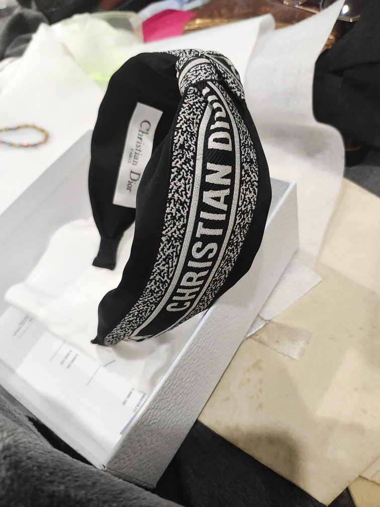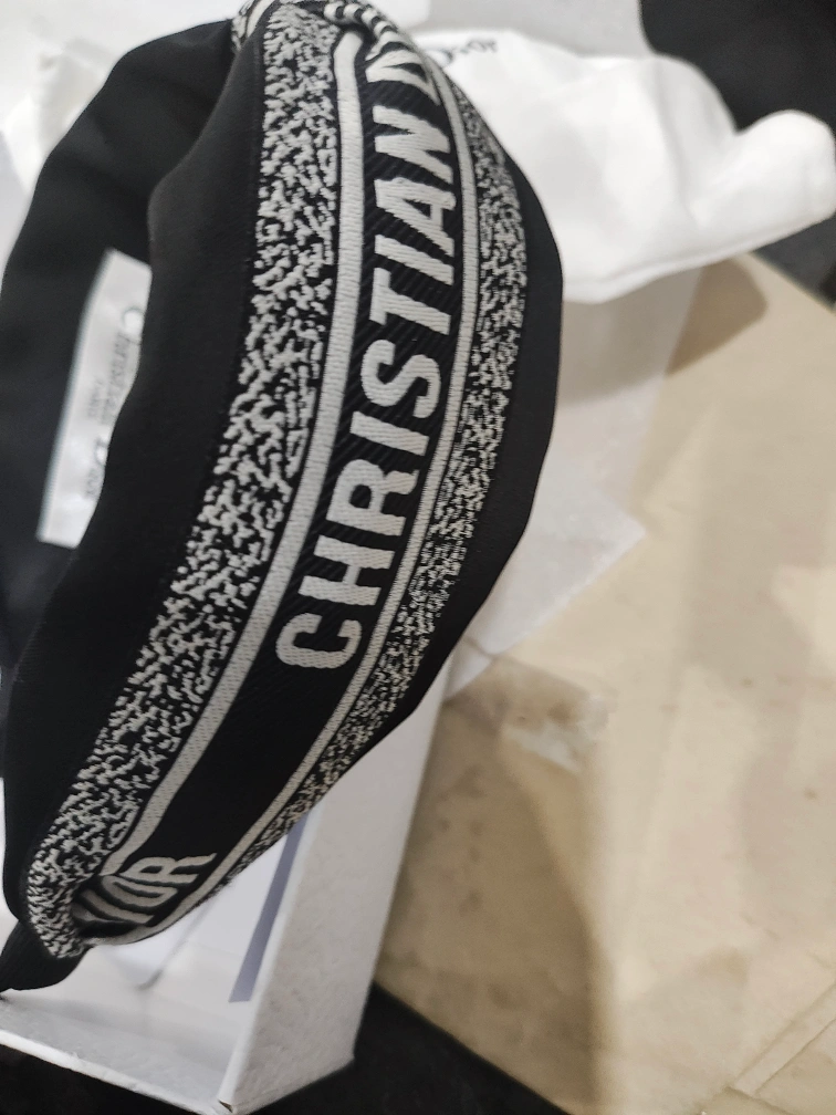 This is a Christian Dior headband in black. It comes with its original box and dust bag. It's in great condition!