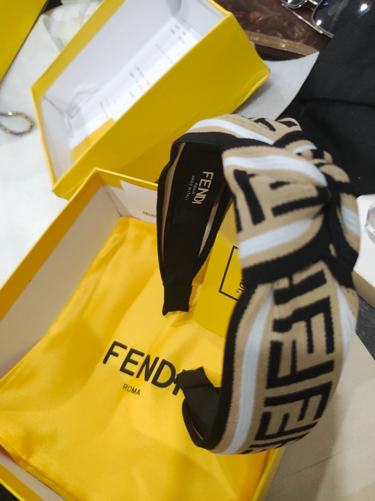 Selling a Fendi Roma headband in excellent condition! It comes with the original box and dust bag. The headband features a stylish design with the Fendi logo. Perfect for adding a touch of luxury to your look!