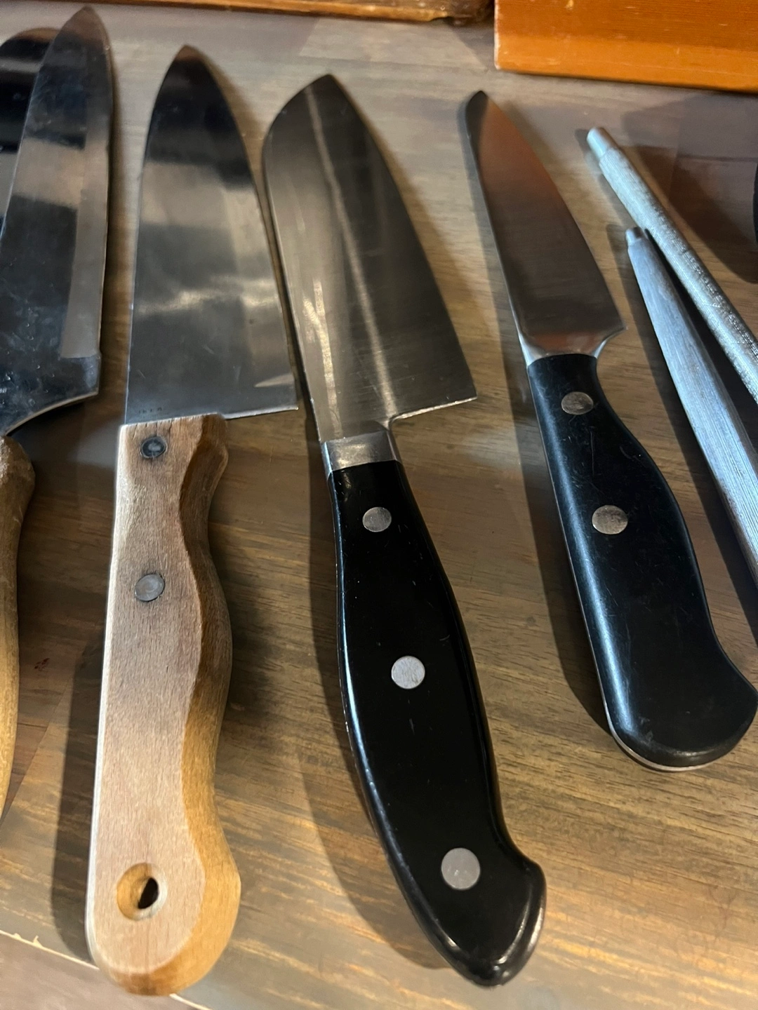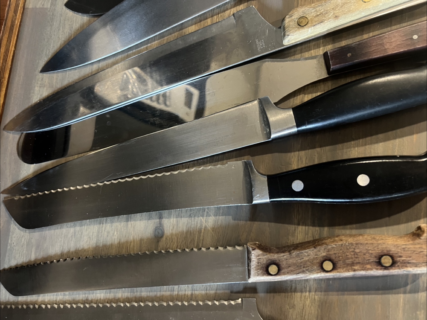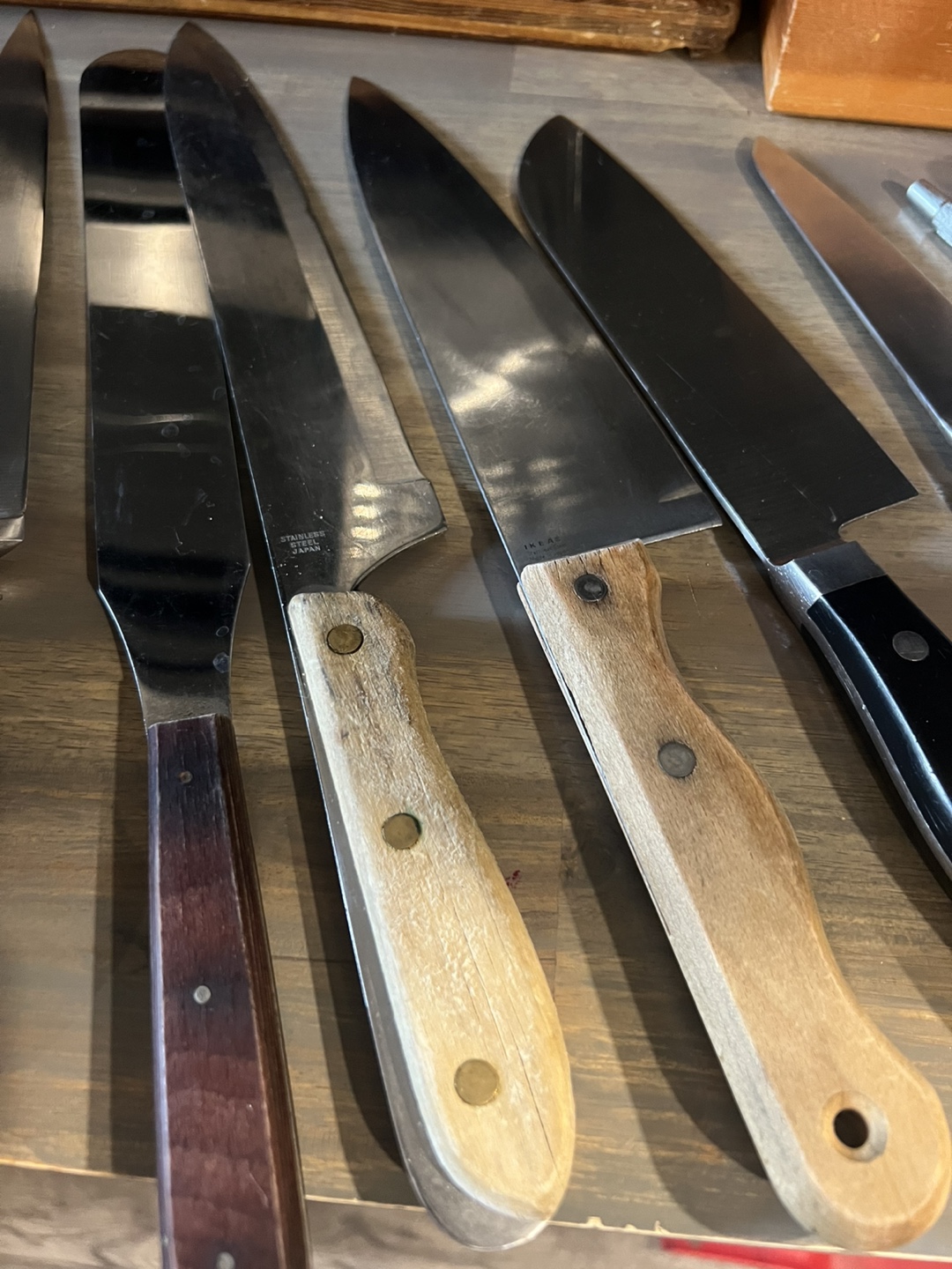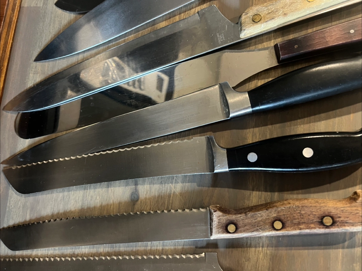Selling a variety of kitchen knives! There are several different sizes and styles. Great for anyone looking to expand their knife collection or replace some old ones. They show some signs of use but are still in good condition. Make an offer.