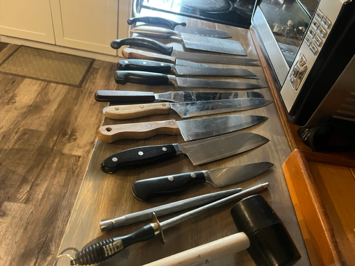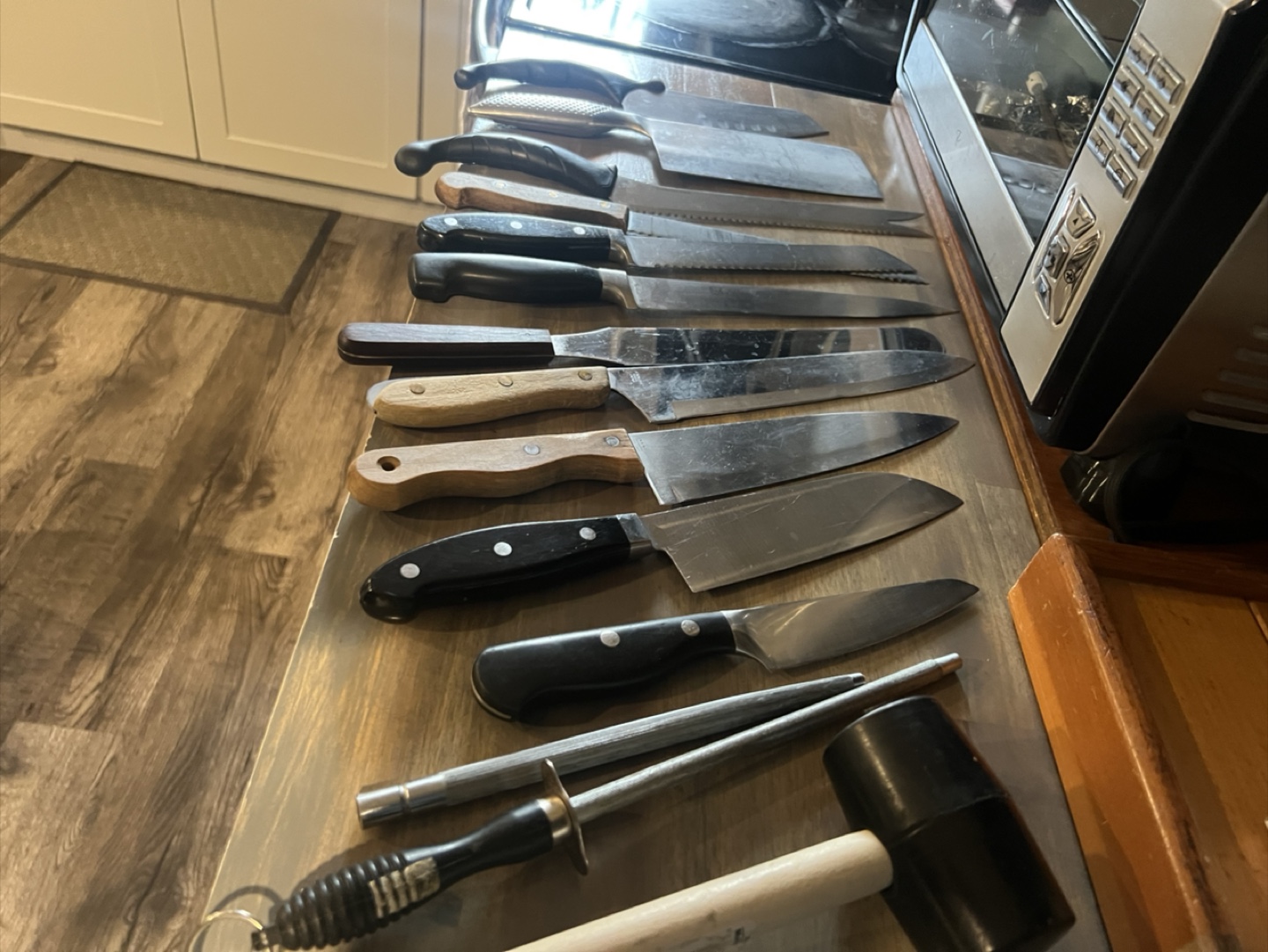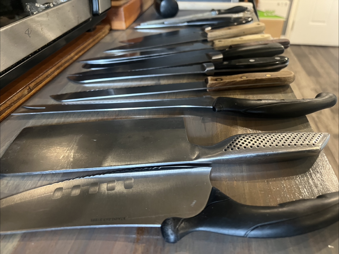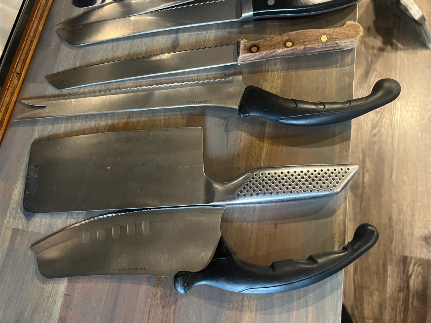 Selling a variety of kitchen knives! There are several different sizes and styles. Great for anyone looking to expand their knife collection or replace some old ones. They show some signs of use but are still in good condition. Make an offer.