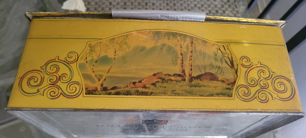 Selling a vintage MacFarlane Lang & Co's biscuit and cake tin. It's from Glasgow & London, established in 1817. The tin has some wear and tear, adding to its vintage charm