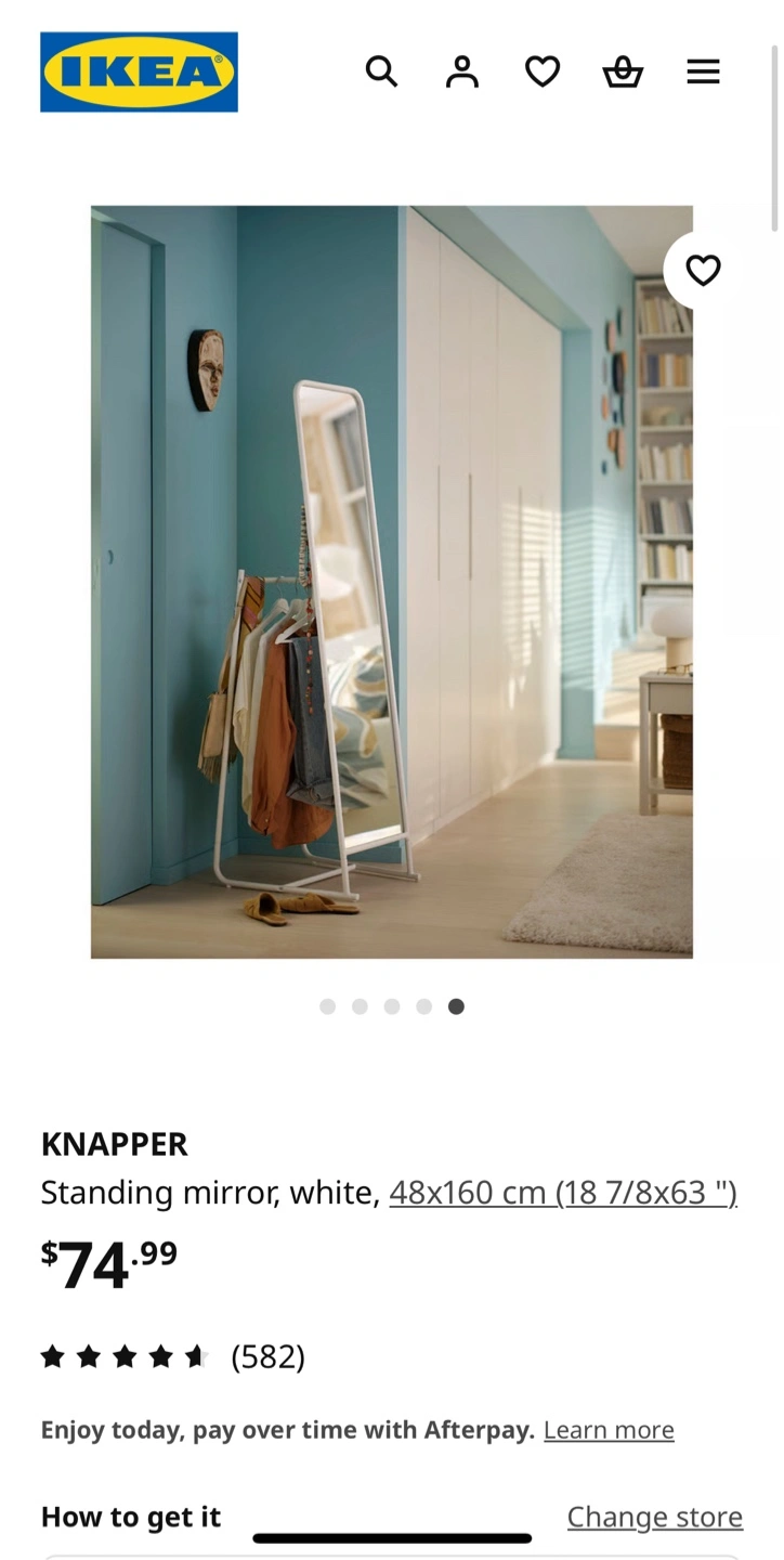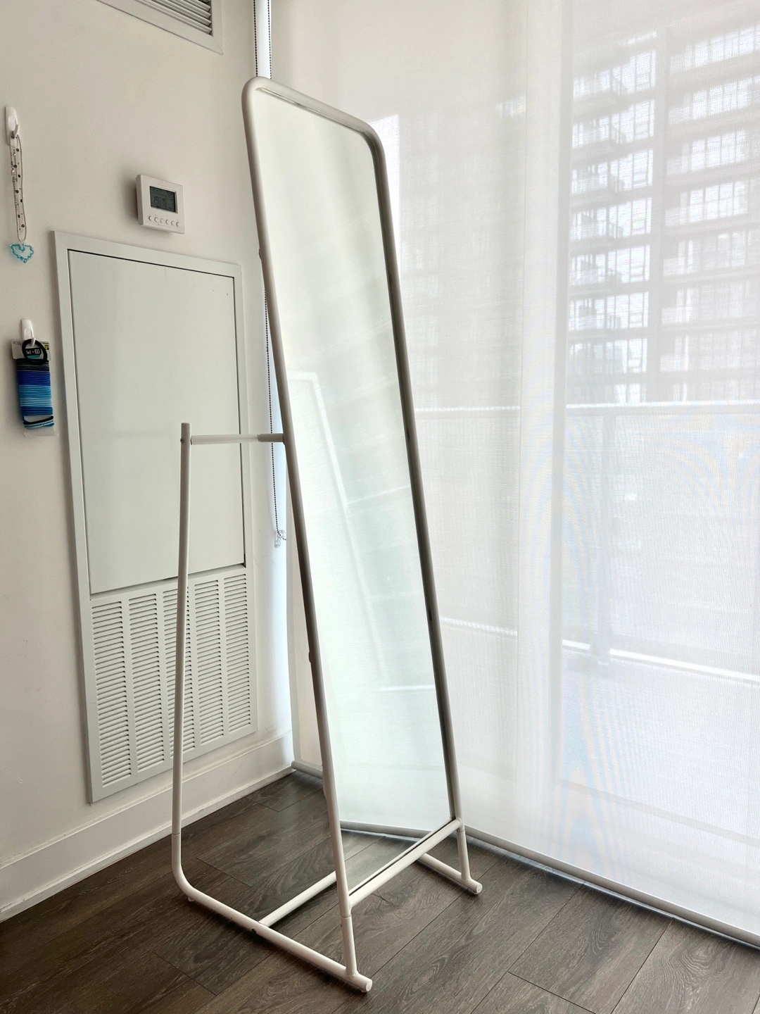 Selling an IKEA KNAPPER standing mirror in white! It's a stylish and functional addition to any room. The mirror measures 48x160 cm (18 7/8x63 "). Originally bought for $74.99