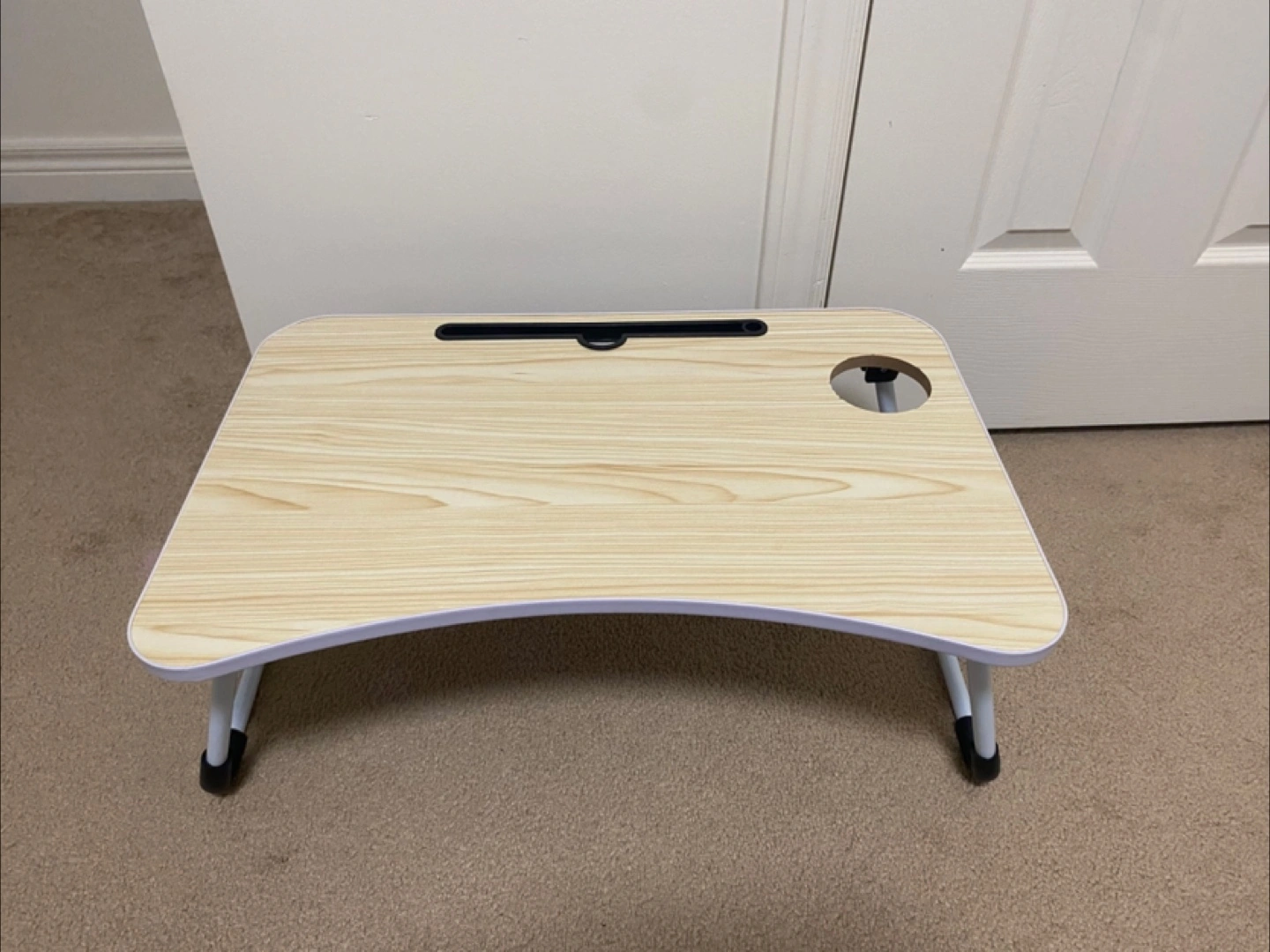 Selling a portable and foldable laptop bed desk! It's perfect for working or relaxing in bed or on the couch. It has a built-in cup holder and a slot for your tablet or phone. The legs fold easily for storage
