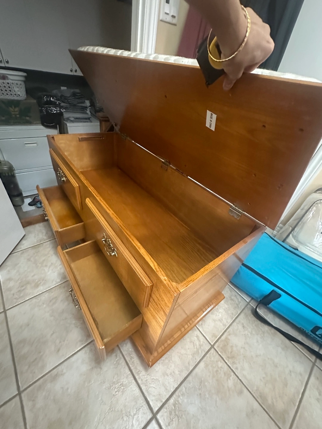 Mississauga, Storage trunk/chest with 2 drawers $150 Very heavy clean pet & smoke free Dimensions in the picture Accent love chair/ sofa $150 Heavy and sturdy Dimension marked in the picture