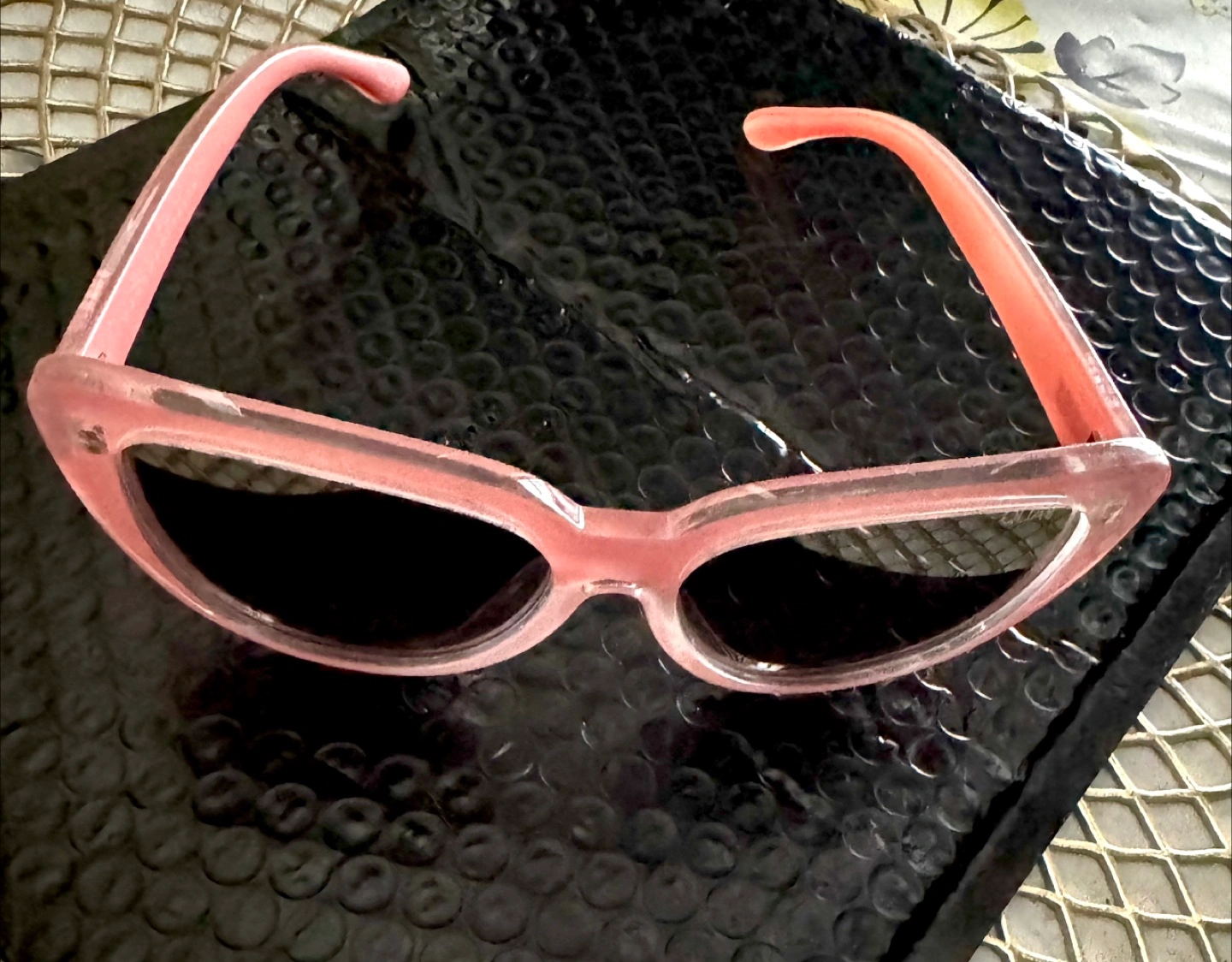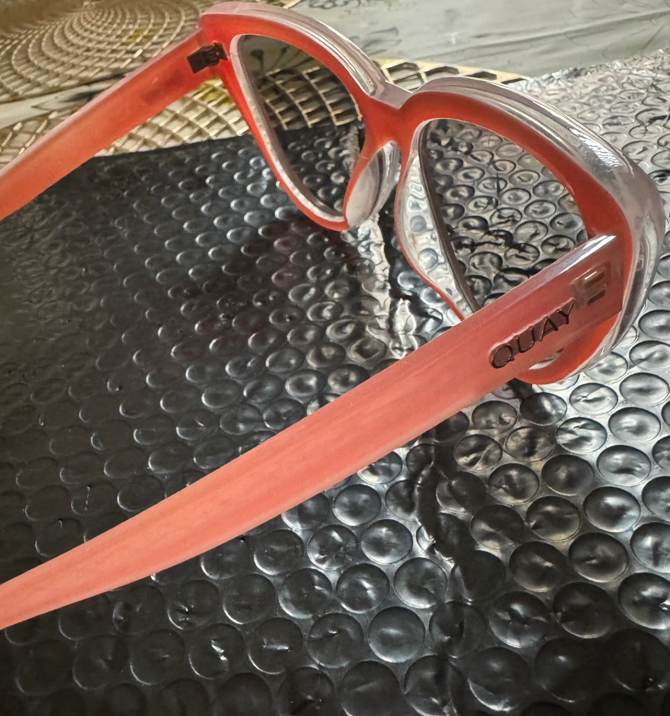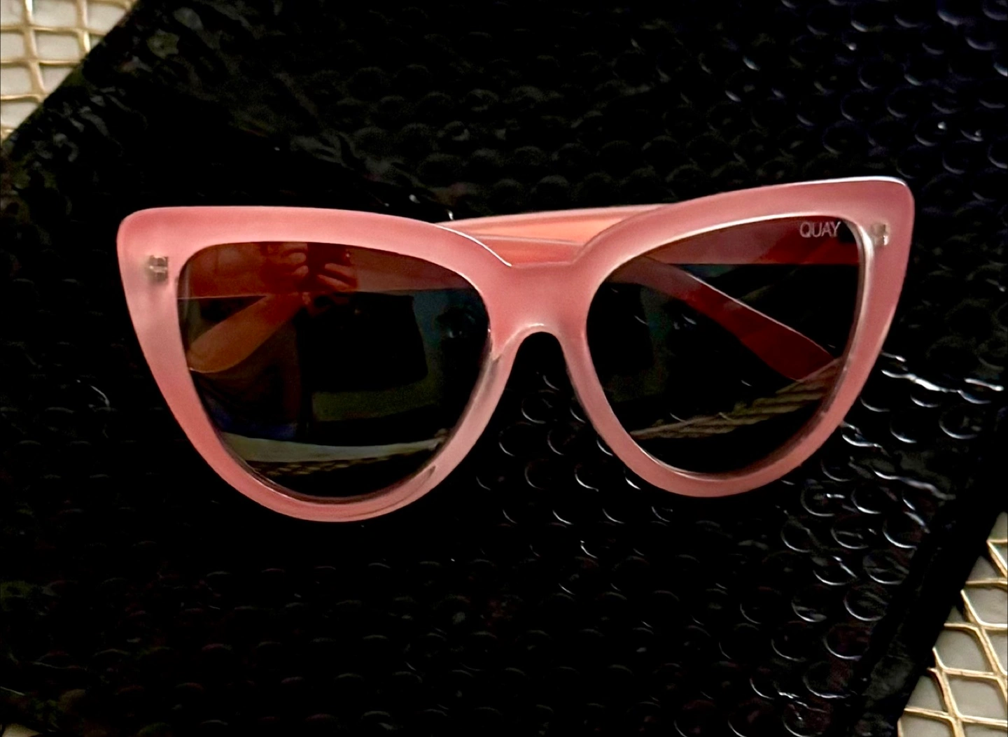 Selling a pair of unique and chic cat eye Quay Australia sunglasses in a lovely blush pink color!