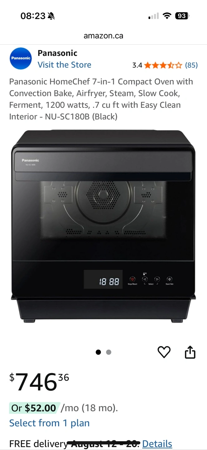 Selling a Panasonic HomeChef 7-in-1 Compact Oven with Convection Bake, Airfryer, Steam, Slow Cook, Ferment. It has a 1200 watts and .7 cu ft with Easy Clean Interior. Model NU-SC180B (Black)