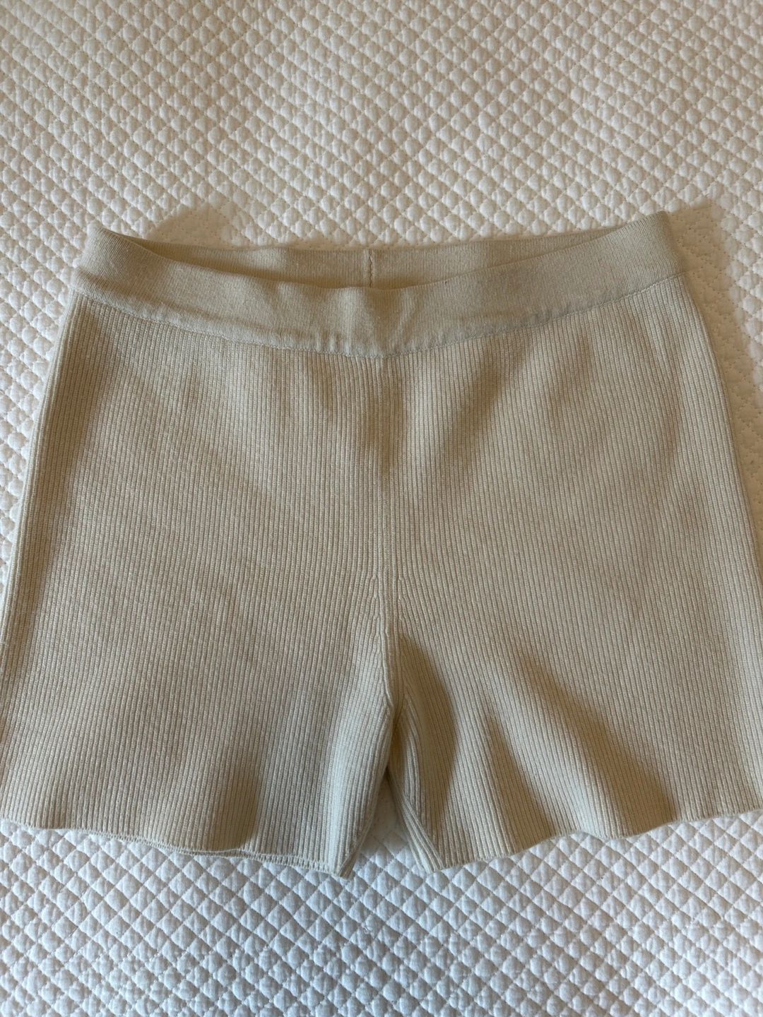 246Selling a pair of Jacquemus knit shorts in a lovely beige colour. They're a size 32 and in great condition. Perfect for a comfy and stylish look!