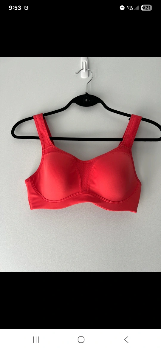 Selling a brand new Wacoal sports bra in size 32C and a lovely coral colour! It's never been worn, so it's in perfect condition.