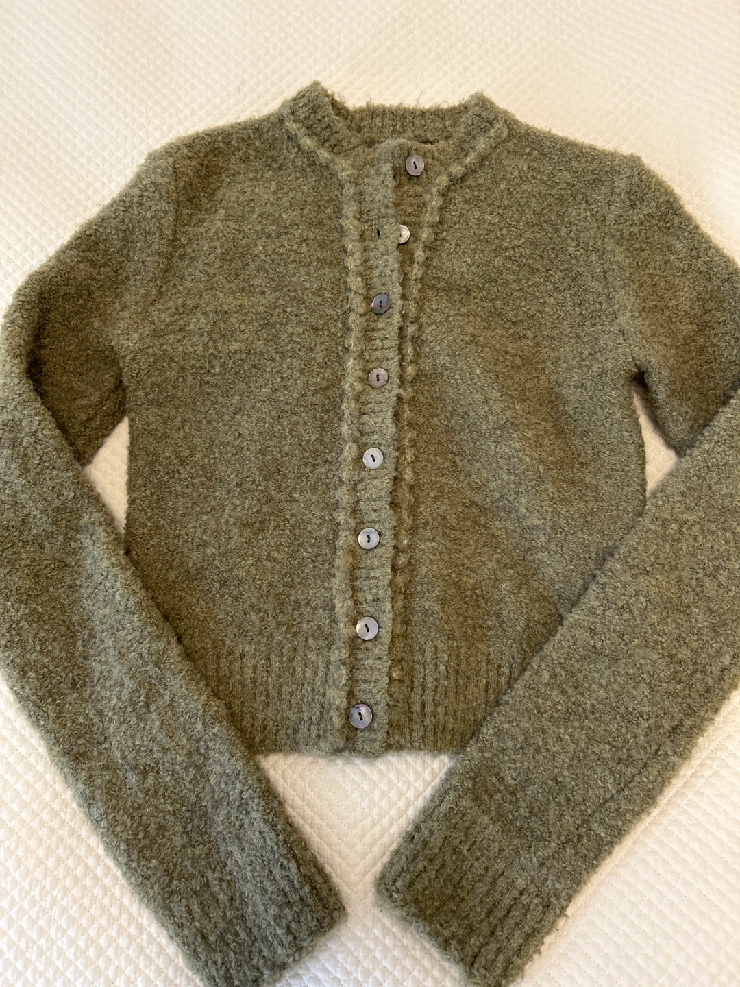 246Selling a cute Guizio Palmyra knit cardigan in size XS! It's a lovely green colour and made of: - 30% Recycled Polyester - 29% Acrylic - 21% Polyester - 11% Wool - 9% Nylon - 4% Elastane Retails for $144 CAD