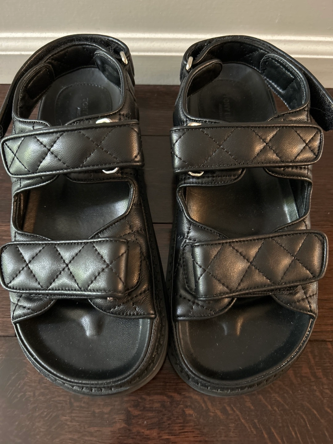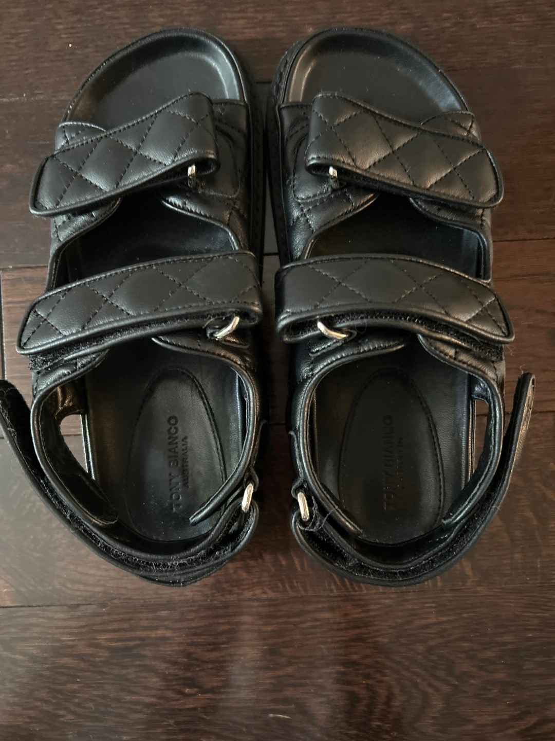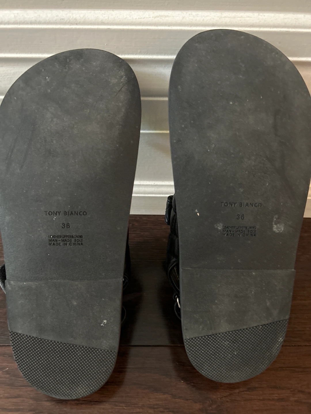 246Comfy Tony Bianco Hiranni sandals in black sheep nappa leather! They're a size 36. These sandals feature a cool quilted design and adjustable straps for a perfect fit. Retails for $159.95 USD