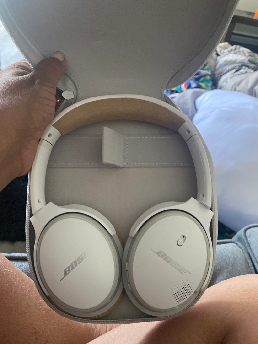 Selling a Bose headphones case in great condition. It's a light grey colour and perfect for protecting your headphones on the go! It has the Bose logo on the front