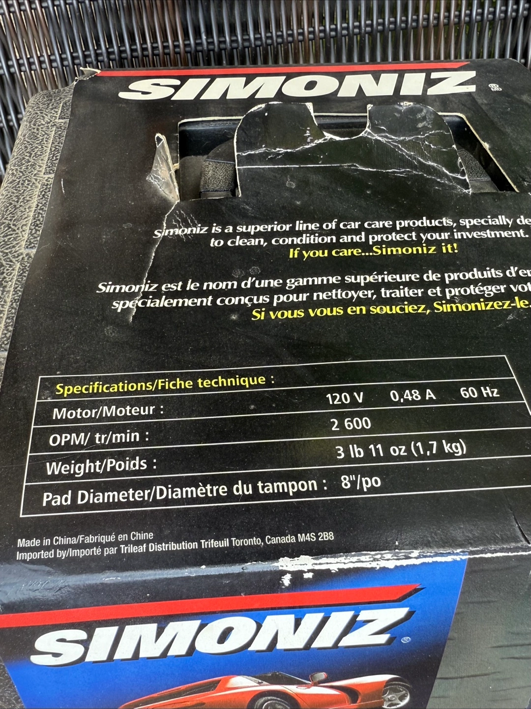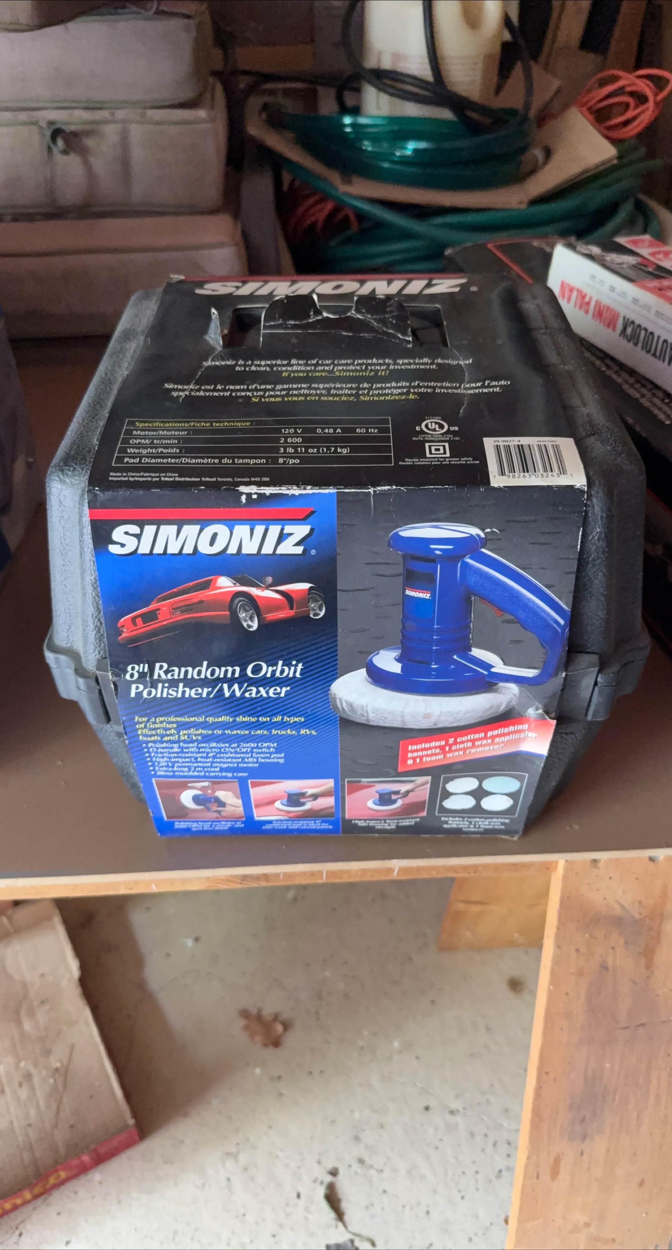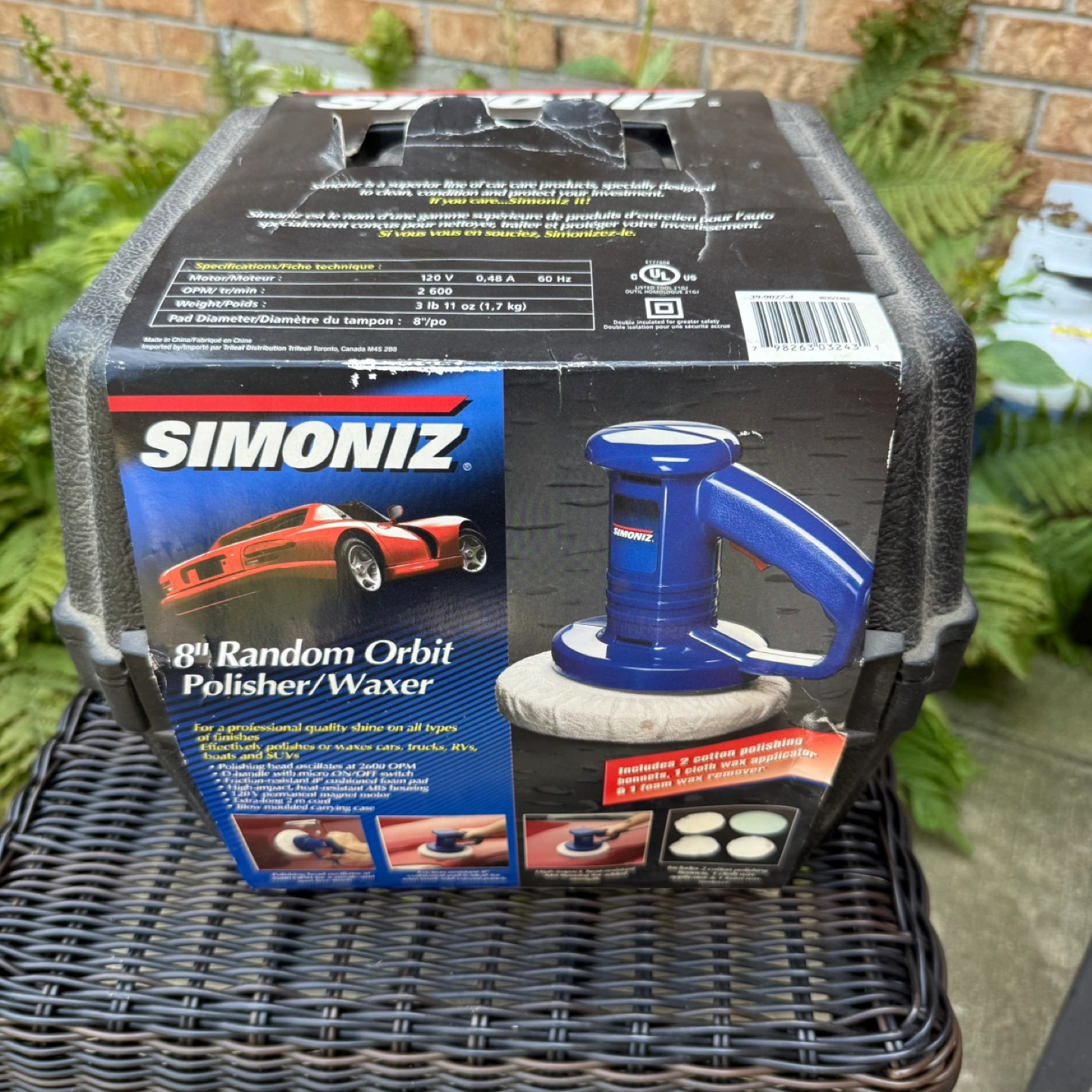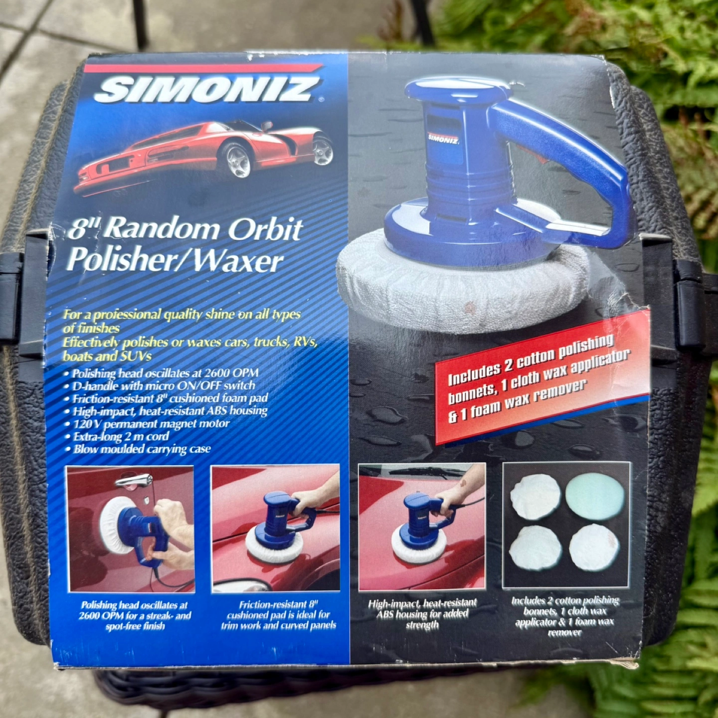 Get your car or boat looking its best with this Simoniz 8" Random Orbit Polisher/Waxer! It's perfect for polishing or waxing cars, trucks, RVs, boats, and SUVs. The box includes 2 cotton polishing bonnets, 1 cloth wax applicator, and 1 foam wax remover