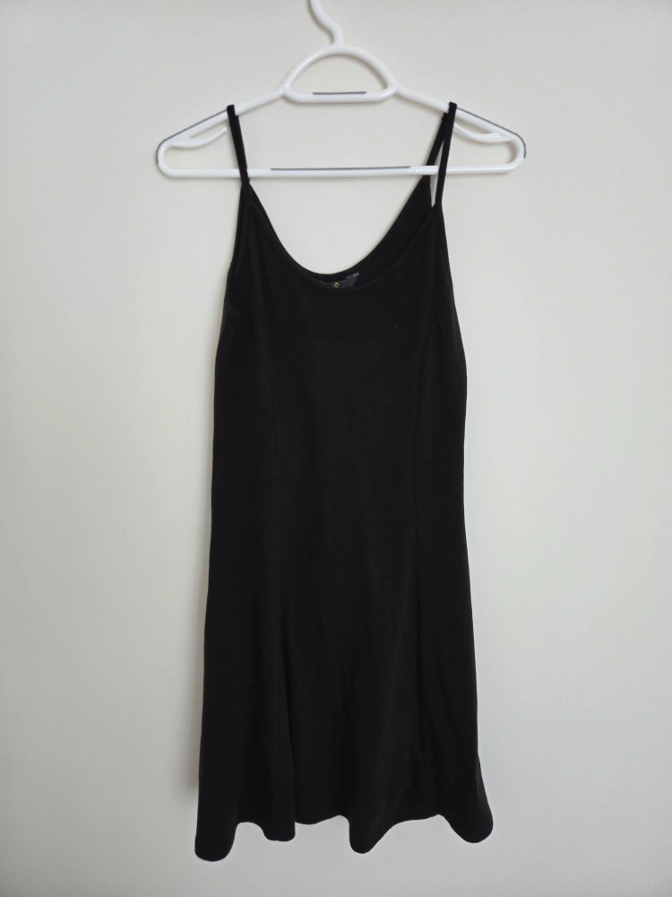 Cute black dress from g.f.21 in size XS with adjustable straps. It's in great condition and ready for a new home! The dress is a simple slip dress style, perfect for layering or wearing on its own. It's a versatile piece for any wardrobe