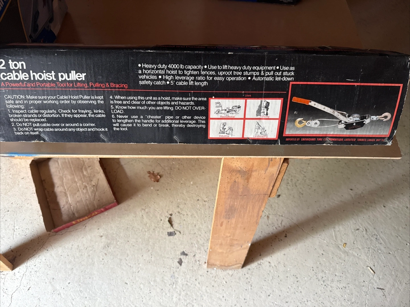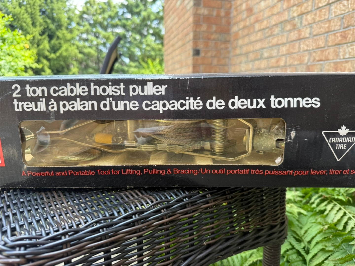 Selling a 2 ton cable hoist puller! It's a powerful and portable tool for lifting, pulling, and bracing. It has a heavy duty 4000 lb capacity, and can be used to lift heavy duty equipment, tighten fences, uproot tree stumps, or pull out stuck vehicles. The box is included!