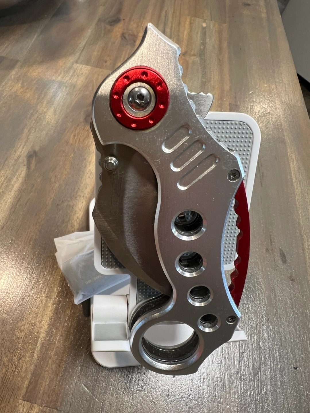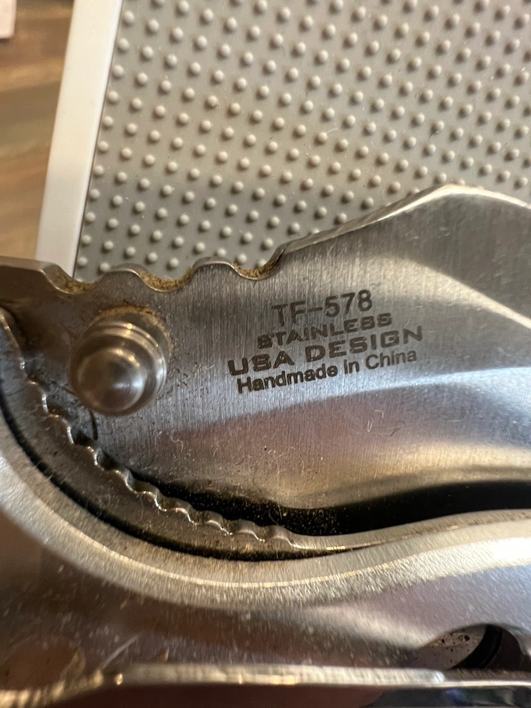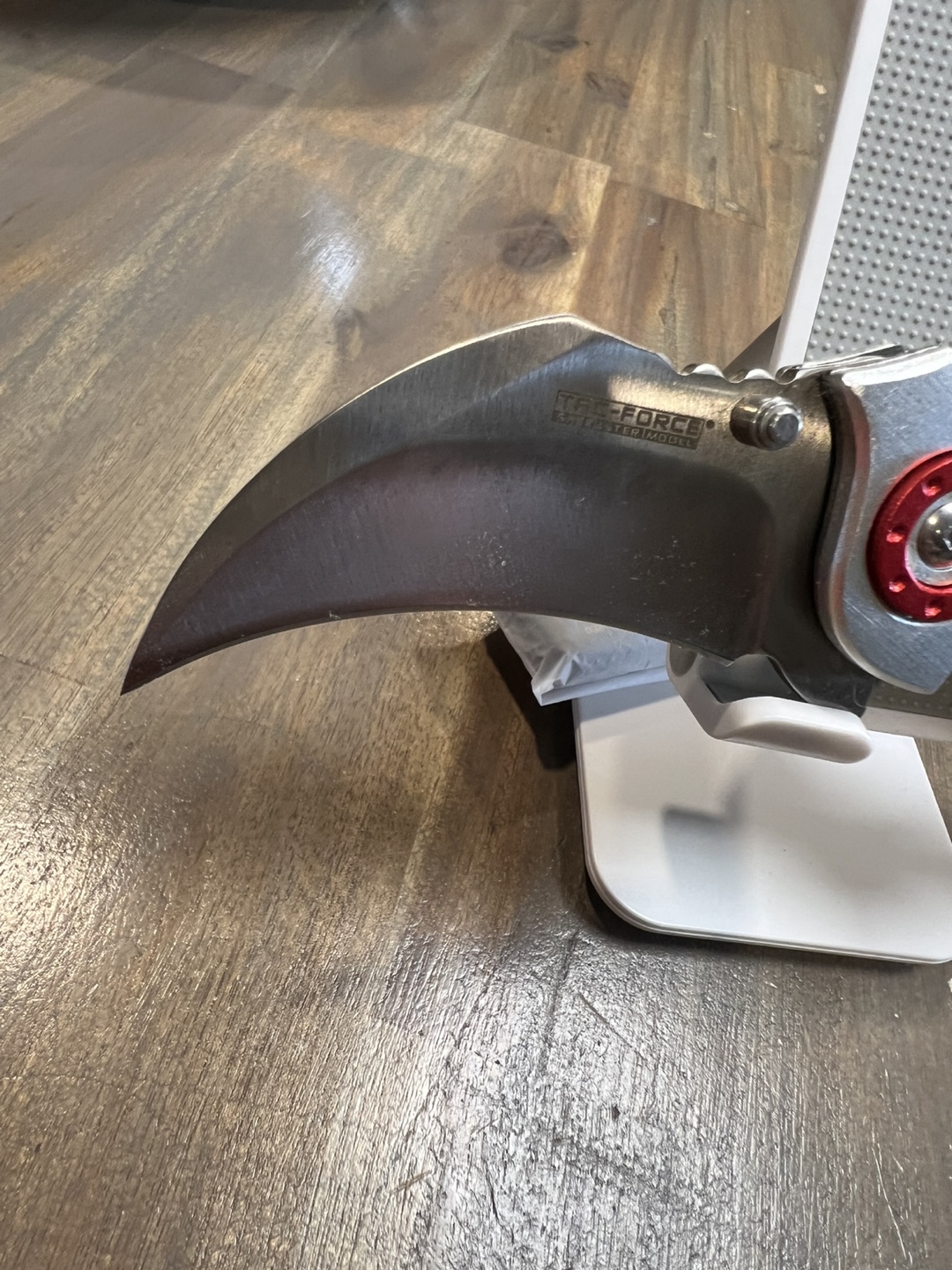 Selling a TAC-FORCE folding knife. The blade is stainless steel and the handle has a unique design with red accents. It's marked as TF-578 and "UBA DESIGN". Valued more than asking price. Open to offers.